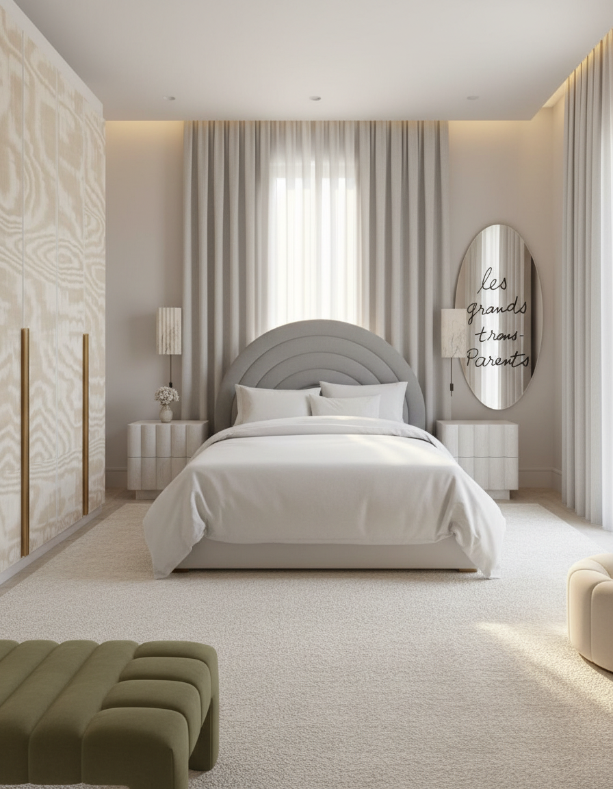 analyze the provided floor plan generate a high quality 3d isometric architectural photorealistic top down true 90 orthographic rendering floor plan of the entire apartment keeping the exact same dimensions proportions walls doors windows and furniture placement as shown do not change layout scale or orientation style modern japanese japan with a soft neutral color palette of beige cream and light wood tones light natura warm neutral tones beige off white soft grey minimalist furniture clean lines built in cabinetry stone or microcement surfaces matte black accents soft ambient interior lighting and soft natural daylight with subtle shadows architectural visualisation distortion no added or removed elements furnish the existing rooms in a modern aesthetic elegant interior keep the tops of the walls cleanly cut and white to show the layout clearly