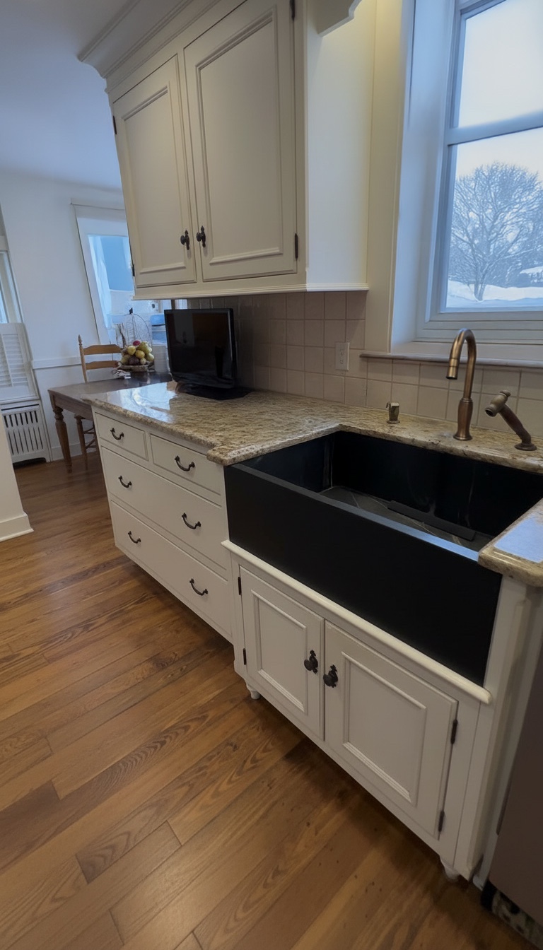 change cabinet color to beige painted and change the walls white change the backsplash to large rectangular zelige change backsplash to large zelige off white subway tile