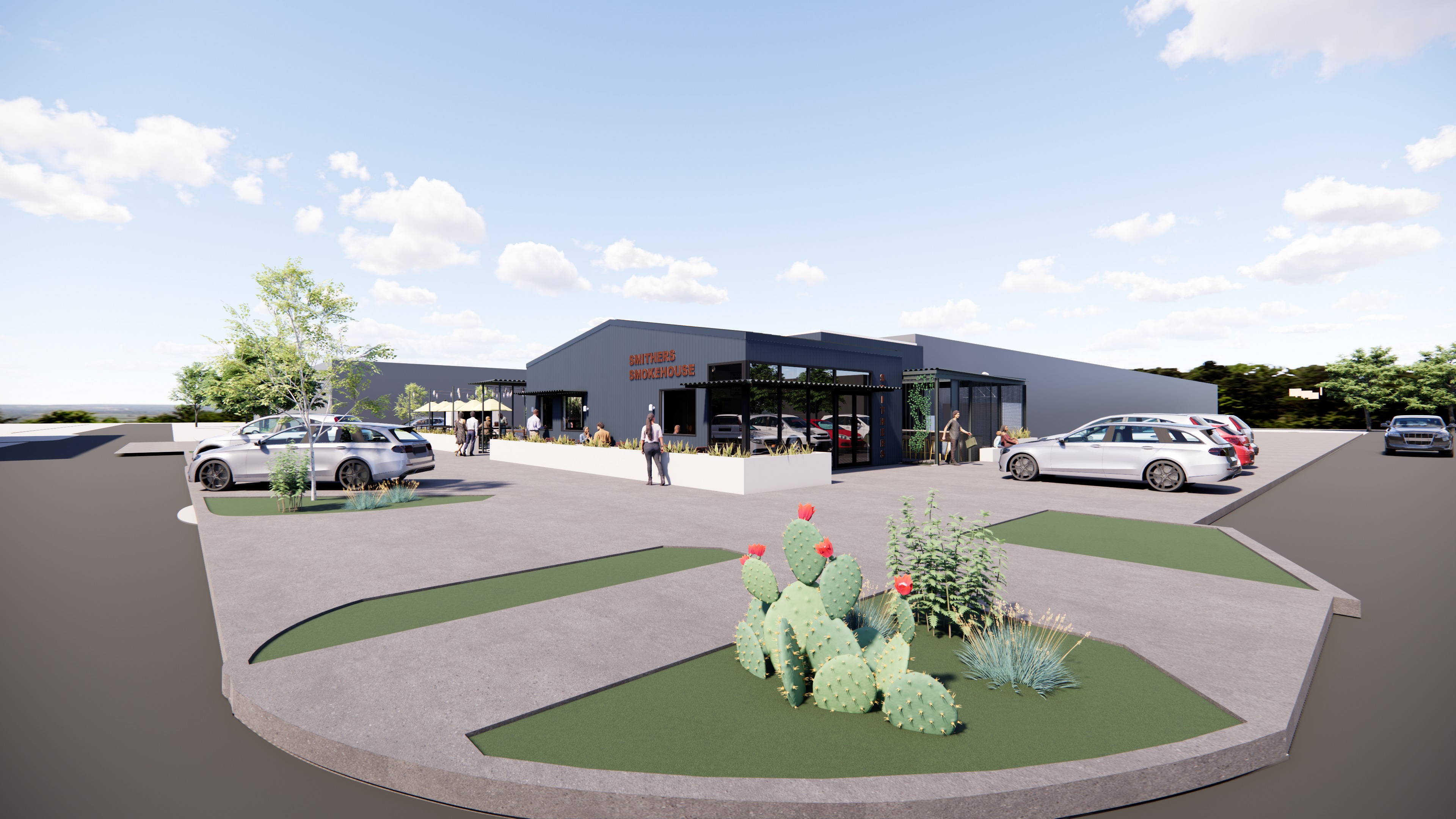 light up the restaruant interior bright blue texas sky summer the back patio only has twinkle lights make the front plants and streetscape more realistic in denton texas