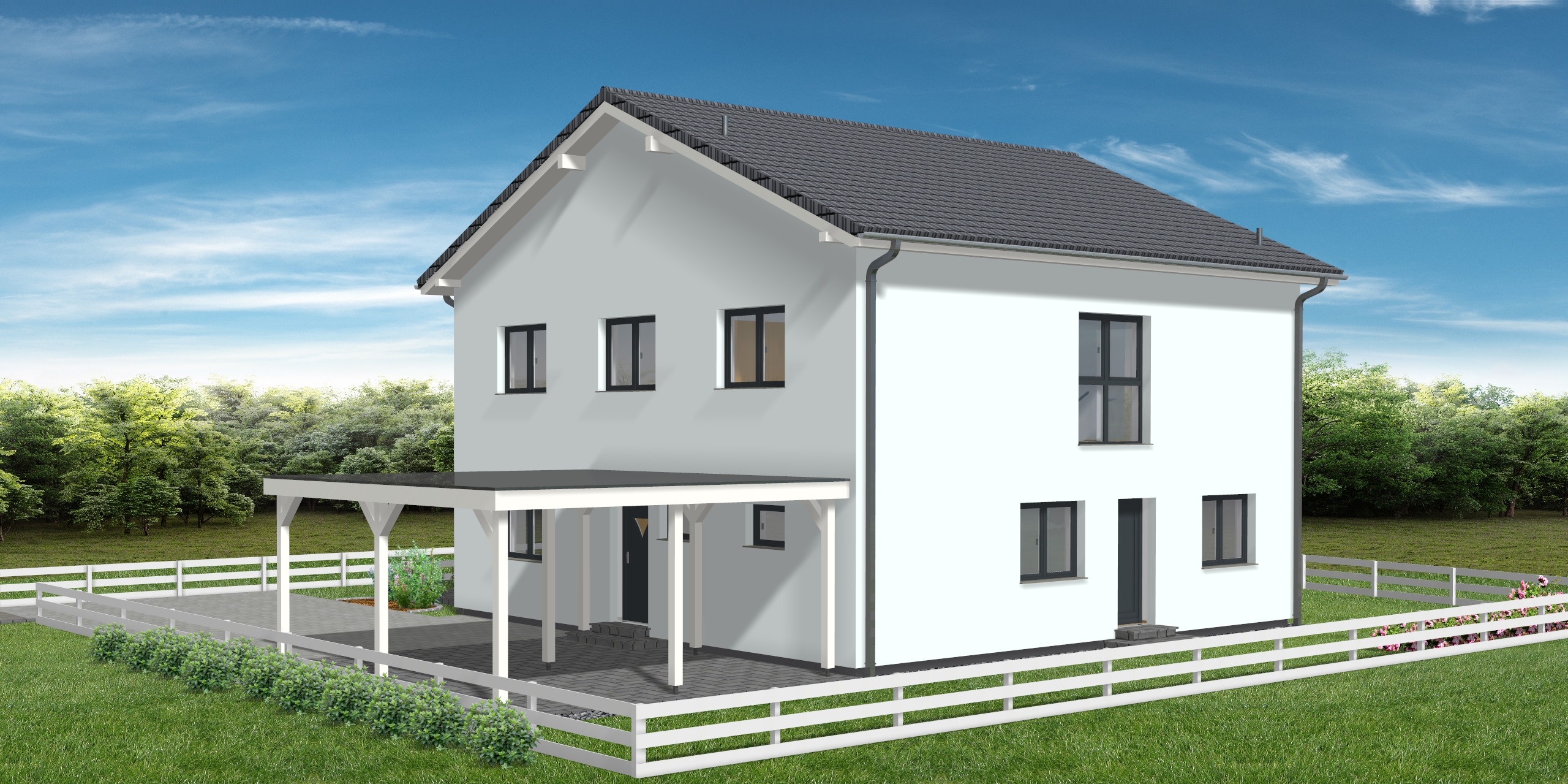 erstelle ein fotorealistisches bild belasse die form des hauses exakt gleich