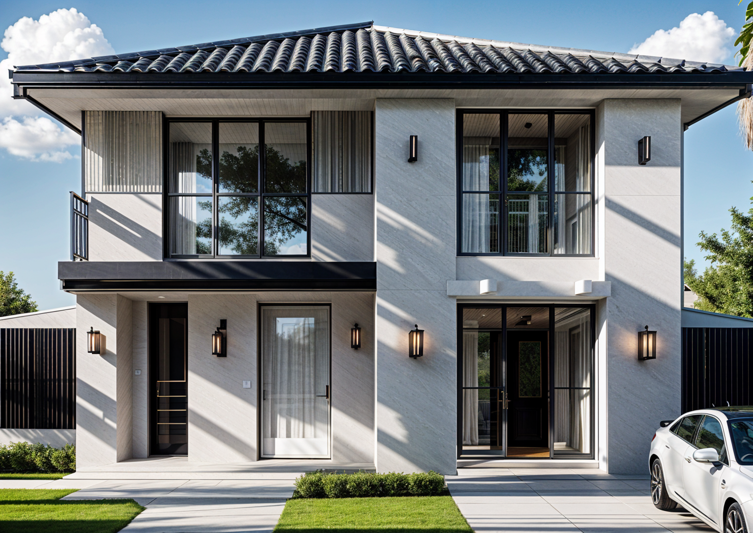 tudor revival perspective shot interior perspective of a magazine reception area inspired by medieval aesthetics elegant and avant garde a vaulted golden ceiling forms a glowing cross reflecting soft indirect light main axis leads to the secretary s desk framed by two carved and aged dark wood panels two dark wooden benches with two seats each align symmetrically symmetrical layout emphasizes balance resembling a fashion runway rich yet minimalist details warm golden reflections white red blue textured gothic wood refined and professional atmosphere architecture