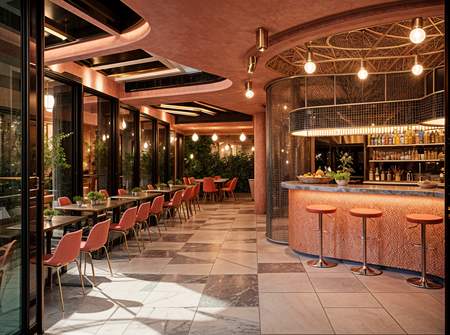 parking lot in front of the store add a few cars sunny weather blue sky slightly overcast small trees in the background in some distancnce in the background flat green areas
