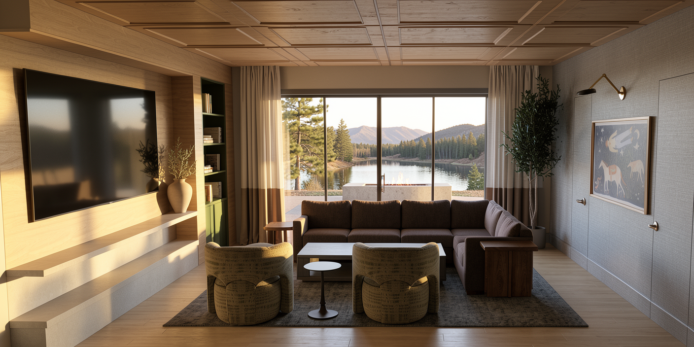 photorealistic architectural rendering based strictly on the provided sketchup model preserve the exact camera angle field of view perspective and framing do not change the layout geometry furniture positions proportions or design intent do not add remove or reinterpret any architectural or interior elements maintain the original design and material proposal exactly as provided do not change or replace any materials colors or finishes the dining table and coffee table must remain in dark timber finish as originally proposed enhance realism only by refining material textures reflections and surface details all proposed interior lights lamps led strips and downlights must be switched on and properly illuminated enhance led lighting and interior lighting to improve brightness and realism while maintaining a natural balanced atmosphere improve natural daylight balance and soft interior ambient lighting refine shadows reflections and global illumination while keeping the original design unchanged maintain true to model colors and accurate material appearance produce a clean professional photorealistic architectural render with a calm and realistic interior atmosphere