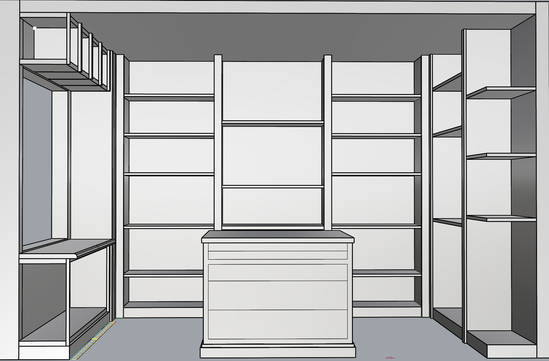 this is a closet space the interiors and exteriors are all painted on wood in the shade blushing bride from benjamin moore the center island is also the same pink shade and the very top layer is a see through glass the floor is white dont add clothes or other accessories