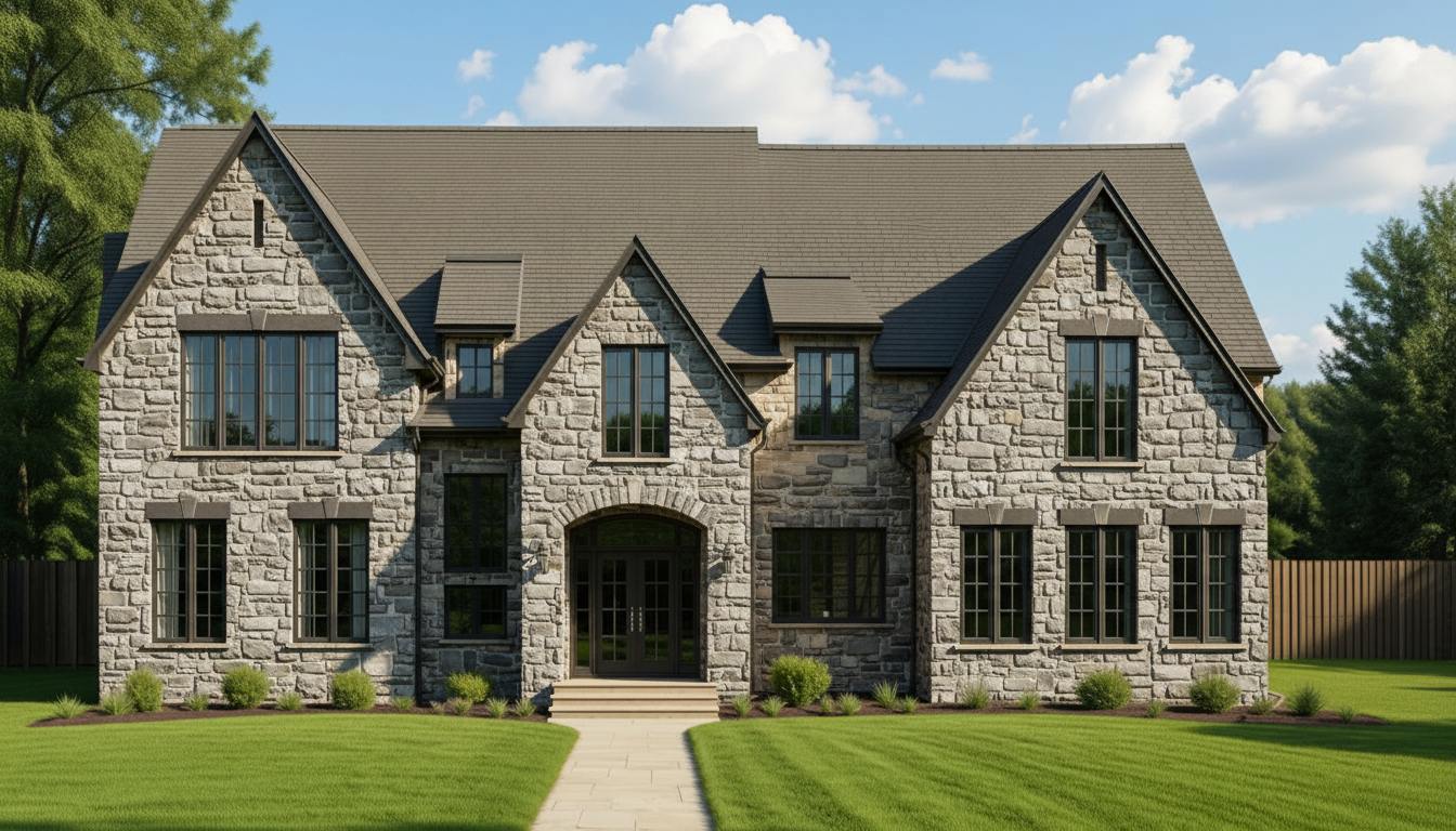 please change the headers on all windows to have vertical stone design similar to contemporary homes
