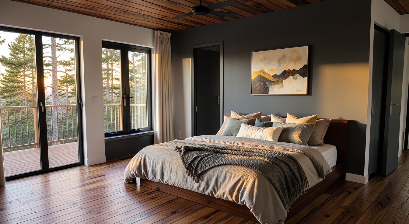 make this rendering look realistic with a nice ambiance add a sloped roof on the wall with soffit and gutter