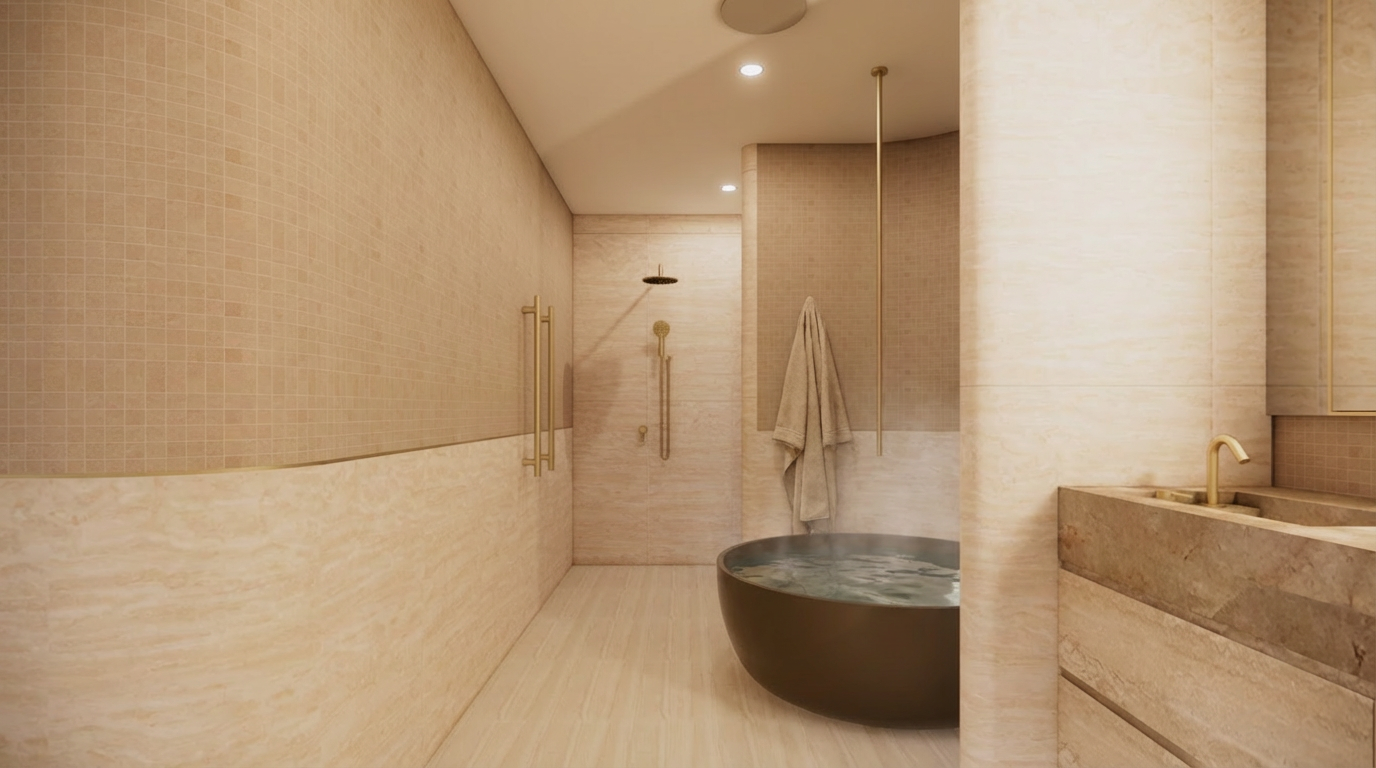 add wabi sabi styling to this bathroom render