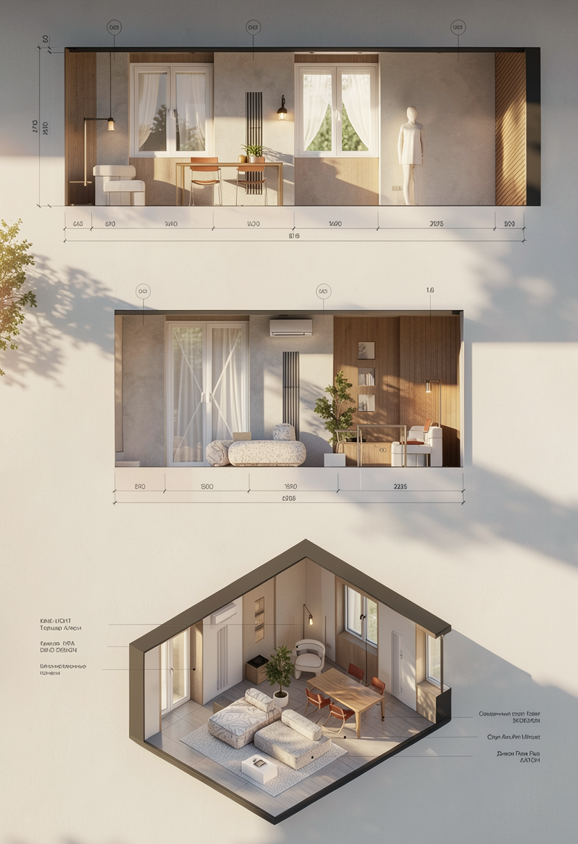 main prompt this is a cycladic house in kythnos we are in the mezzanine the floor is oak wood the base cupboards are white the desk is oak wood the walls are white there is natural light the sconce is terracotta ceramic negative prompt do not change geometry do not add objects do no change colors or materials