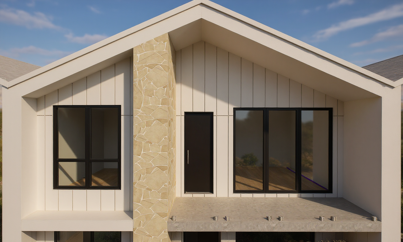 using the provided reference image create a hyper realistic architectural rendering that strictly preserves the existing design layout materials furniture and proportions with no design changes enhance realism through advanced global illumination soft natural daylight accurate shadows and subtle ambient occlusion improve material textures with realistic surface imperfections micro texture slight wear natural variation while maintaining the same color palette refine lighting to feel warm and natural with balanced highlights and soft contrast simulating late afternoon desert light add a single seated human silhouette in one of the chairs neutral gray semi transparent minimal detail used only for scale and atmosphere replace the exterior view with a desert landscape background subtle sun washed tones distant horizon minimal vegetation kept soft and slightly out of focus to avoid visual competition camera angle composition furniture placement and architectural elements remain identical to the reference output should feel photoreal cinematic and calm with a high end hospitality aesthetic