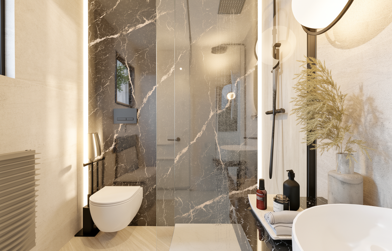 exterior shot change color of the closed meeting space where the wall and floor have orange tone change the wall of the closed space to green ribbed acoustic panels and the floor of the closed space in this green carpet the open office space keep it untouched