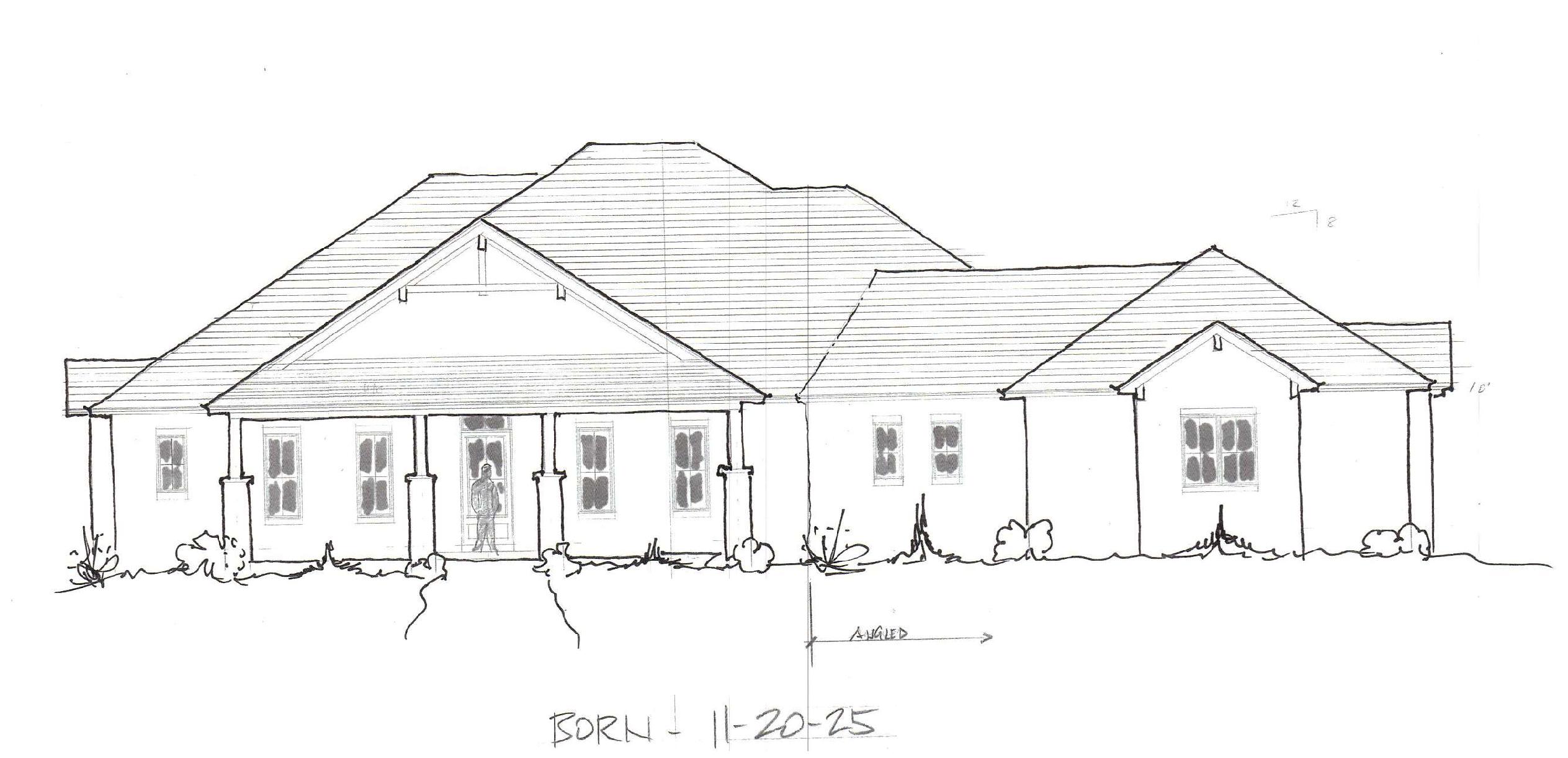 cottage with stone walls and shingle porch roof at night architecture