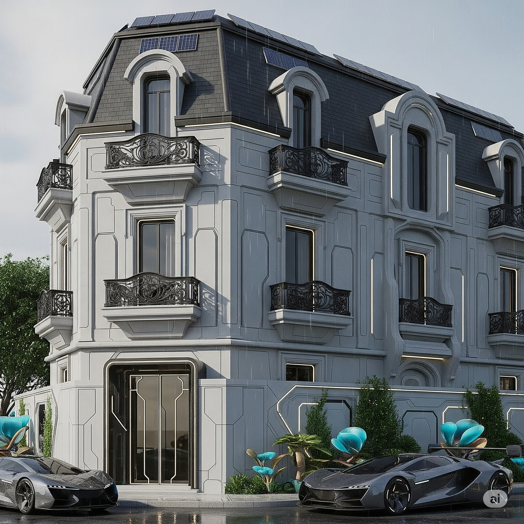 minimalism exterior shot detailed home with vegetation background sunset mood architecture