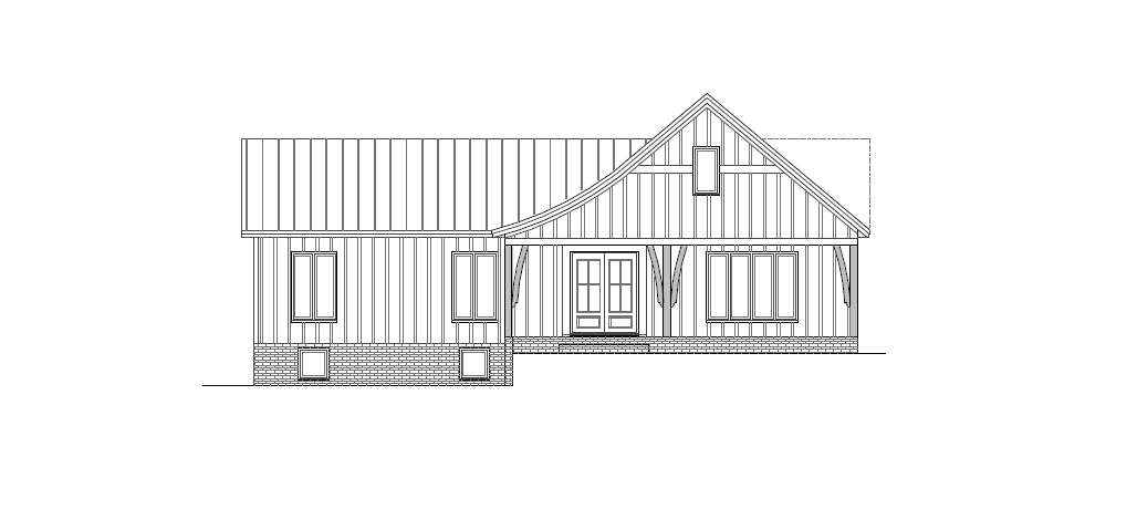 exterior shot cottage with white siding black windows white brick and black metal roof lush landscaping