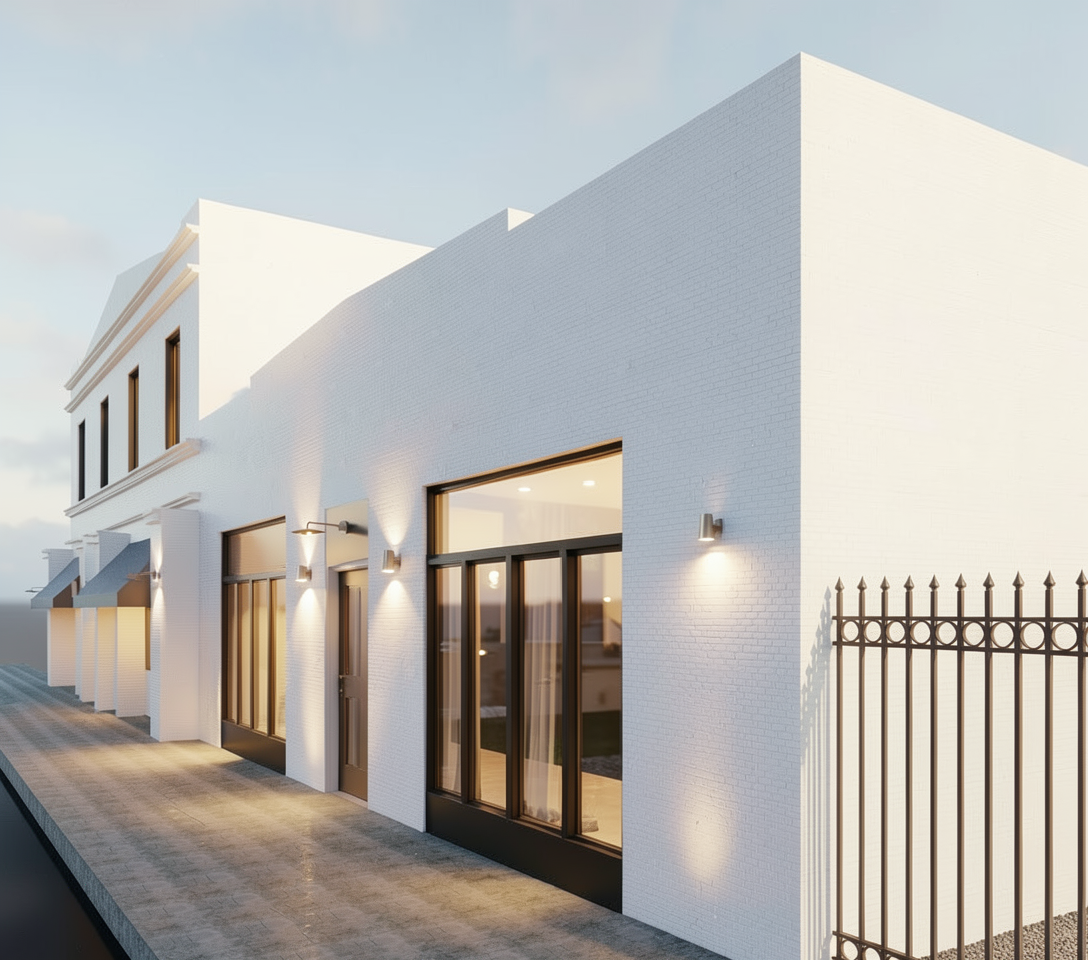 define white brick lighting black awinfs in the back