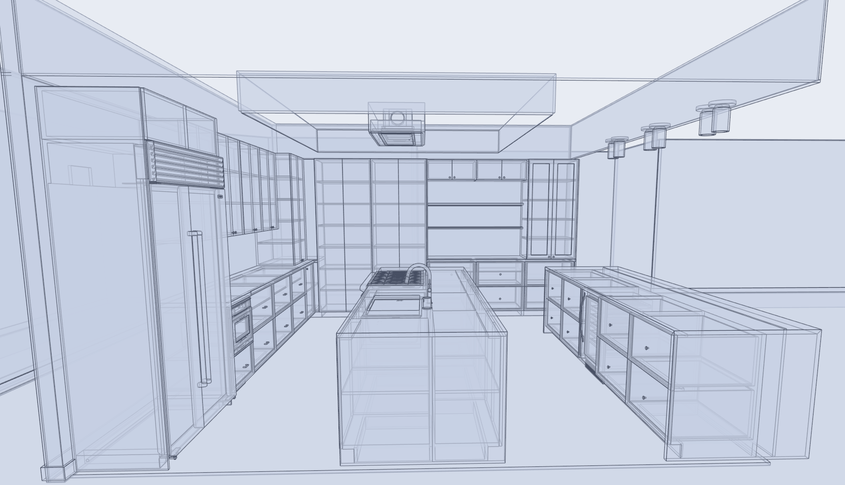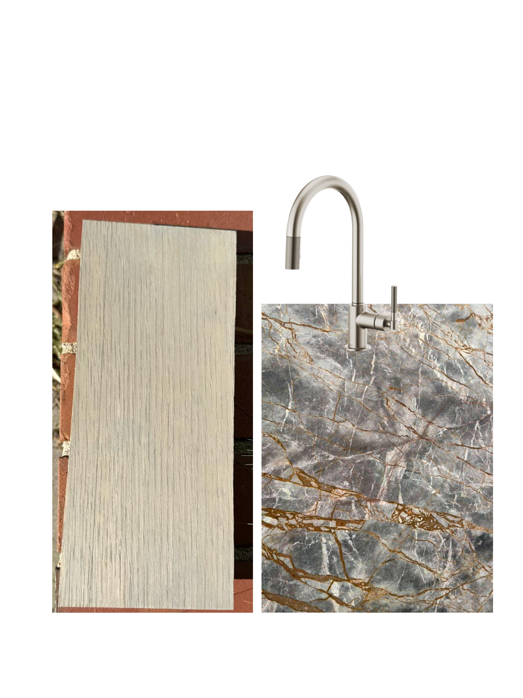 exterior shot wood flat cabinets greywashed oak and natural stone countertop and backspalsh