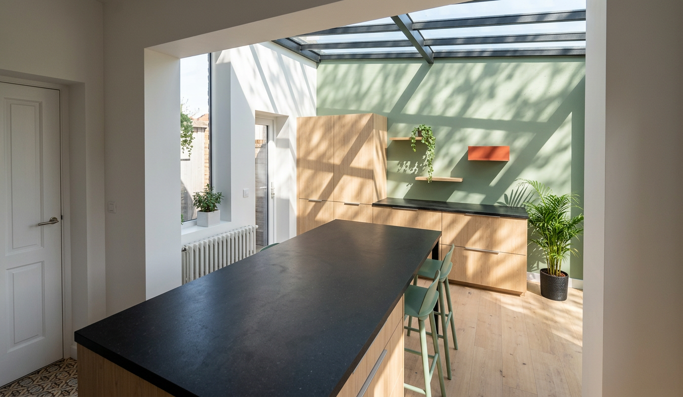la cr dence le robinet et l vier sont en inox les tag res en haut gauche sont vertes ne modifie rien n ajoute rien et ne supprime rien sur l image
