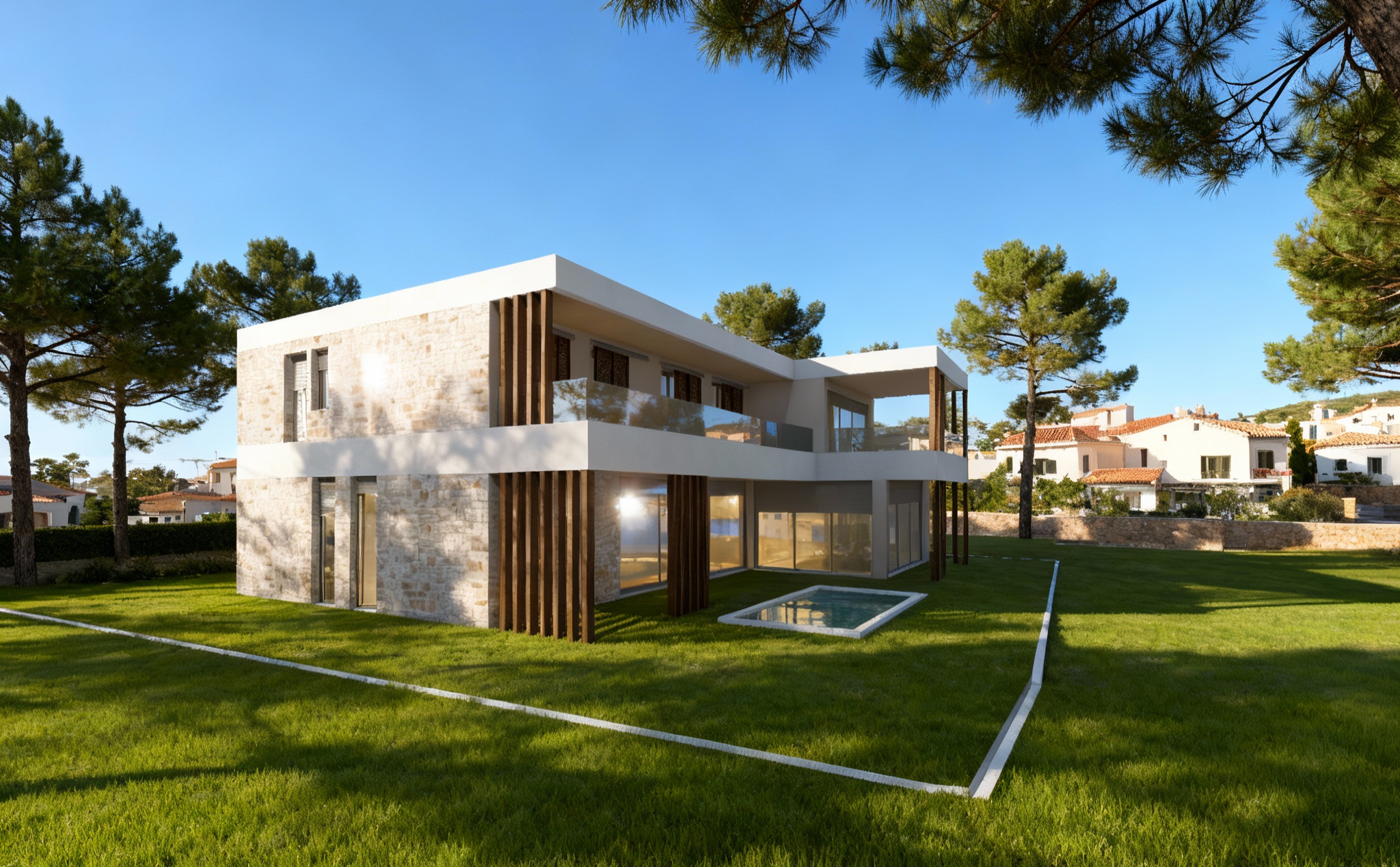 classical exterior shot in an australian rural setting at sunset with a lush green garden external colour pallette of white and soft grey architecture