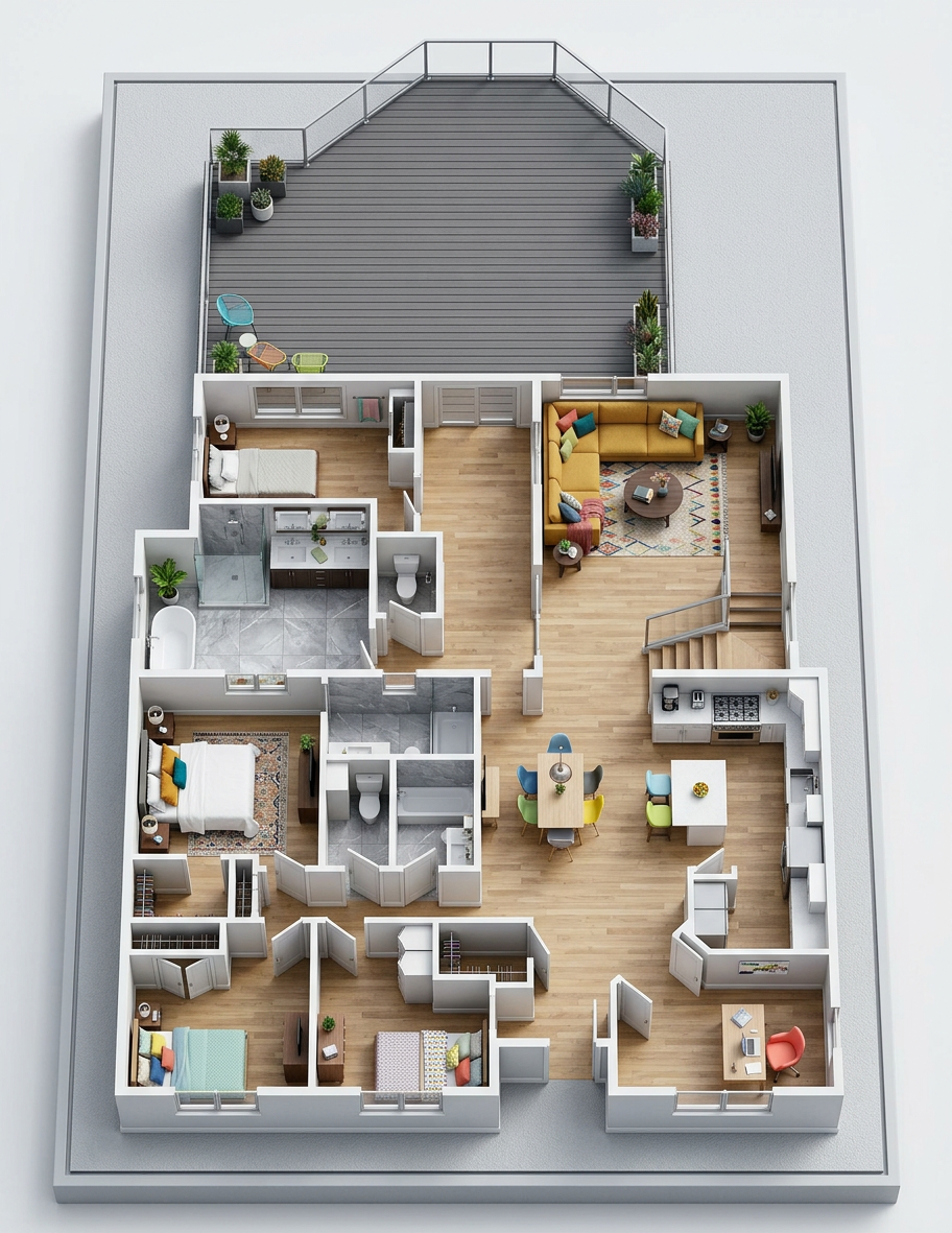 exterior shot keep the perspective and promotions the same but add the finishes and joinery
