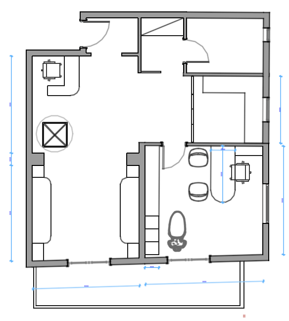 convert this 2d floor plan into a realistic 3d floor plan render top view modern medical office clean layout detailed furniture realistic lighting the floor is all light grey tile some walls and some furniture are terracotta color not all the walls