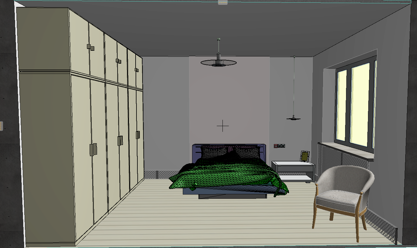 classical interior shot a room in a modern classic style with light sand beige walls with a large double bed with blankets and beautiful pillows the protruding wall behind the bed is decorated with decorative vertical slats or stripes next to it is a classic style wardrobe in pastel colors with gold handles also on the side of the bed is a bedside table above the table hangs a sconce that shines a modern chandelier hangs on the ceiling illuminating the room modern roman style curtains hang on the window the skirting board is made of a decorative grille in the same color as the wall and there is also the same decorative grille in the same color as the wall under the window architecture