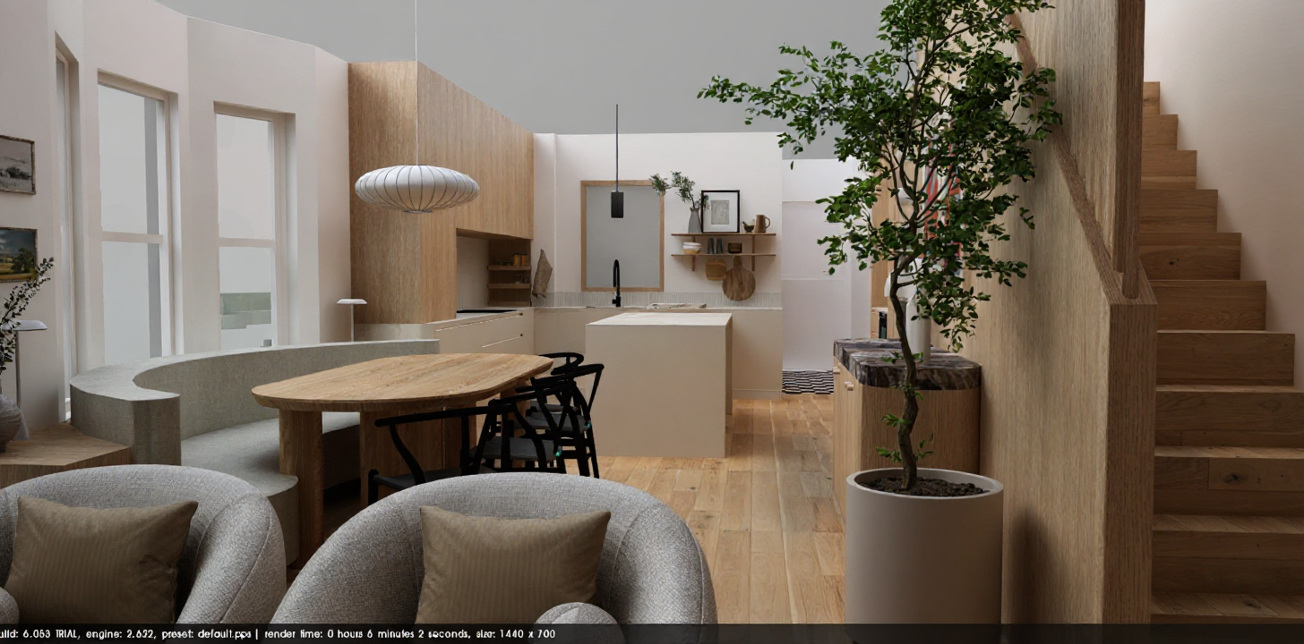 exterior shot white tiles 120x120 and kitchen is too dark make it shiner architecture