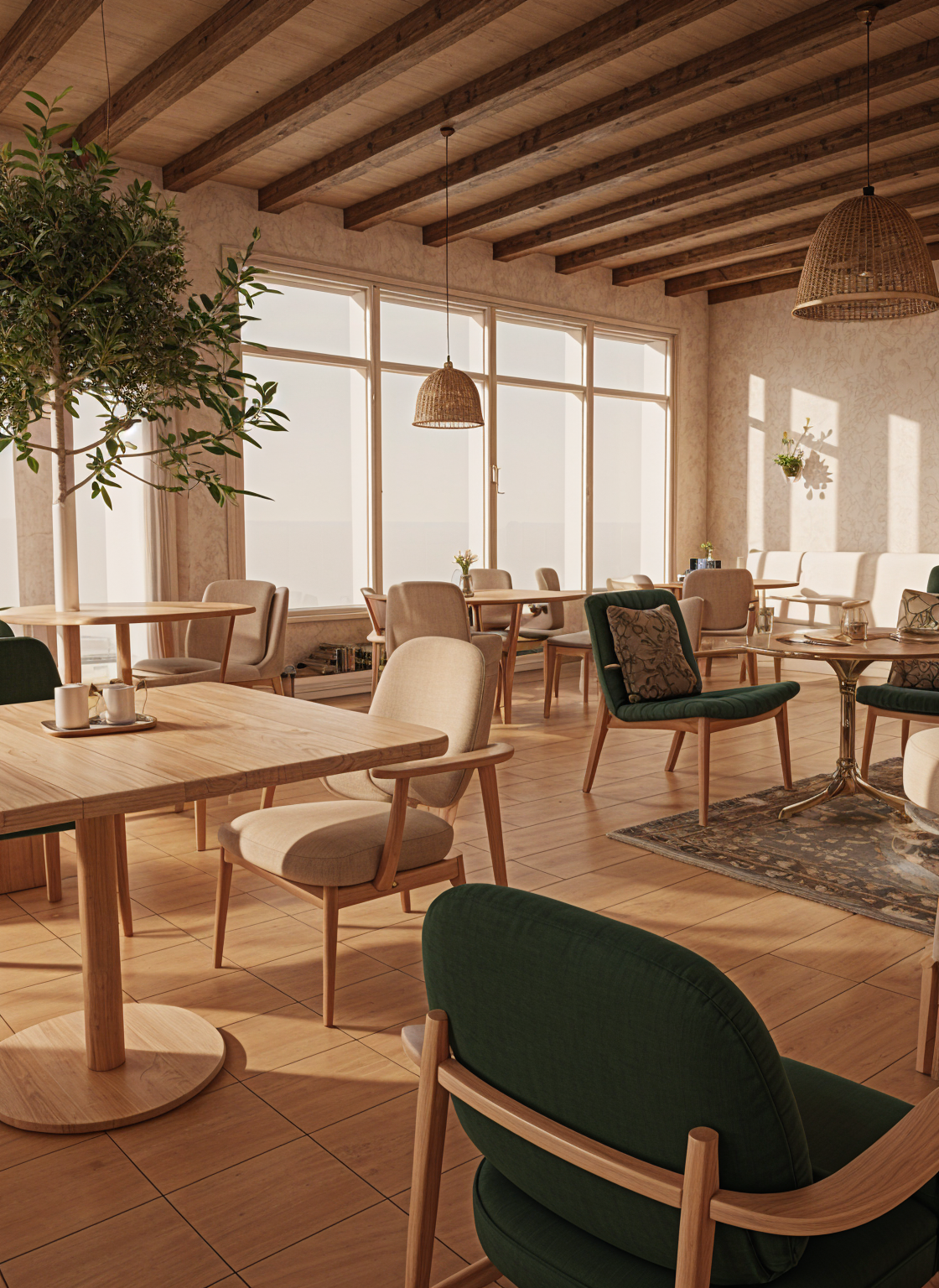 rustic modern exterior with large contemporary window patterns mix of stone and wood with dark trim granite cobble driveway wood garage doors architecture
