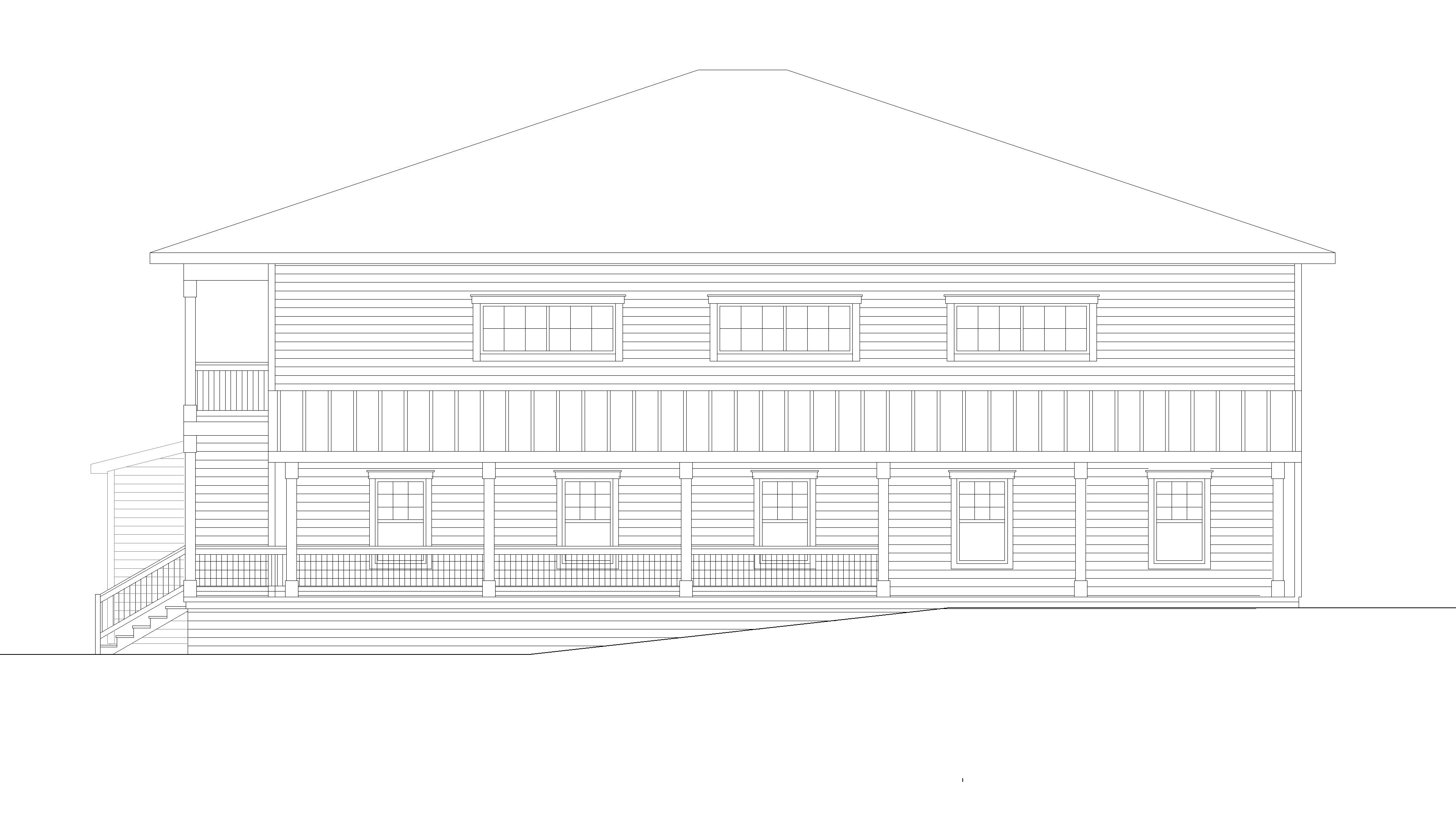 nouveau commerce a mont tremblant village qc revetement rouge sang de boeuf moulures blanc creme toit au 2e tage en bardeau d asphalte noir 2 tons petits toits en avant et de la galerie en tole noir lac cot gauche et village et arbres l arri re gazon et arbustes tout autour vue de face le volume a droite est l avant de 9 pieds