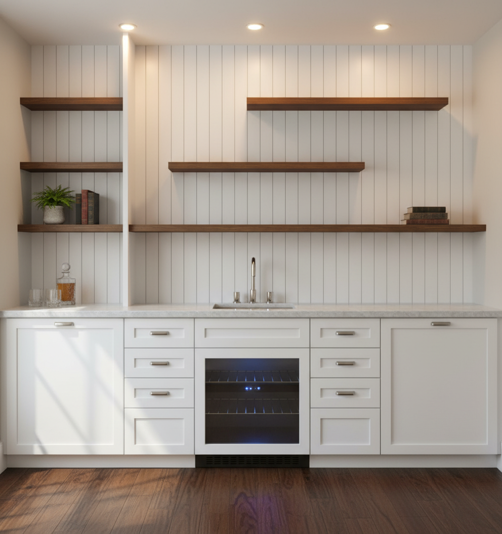 create a realistic detailed rendering of a modern duplex the duplex should feature a symmetrical design with gable roofs in a modern farmhouse style use vertical white siding the roof and accents should be in dark charcoal gray incorporate large black framed windows and doors for a sleek look integrate subtle lighting for an inviting evening ambiance opt for a clear dusk sky to create a calm serene atmosphere set in the lush seattle area with mount baker in the distance there s flocks of geese migrating south in the distance there is a family or two around going about their enjoyment the landscape features tall cedar hedges by the sidewalk large white hydrangea shrubs around the porch and white pampas grass by the driveway edges