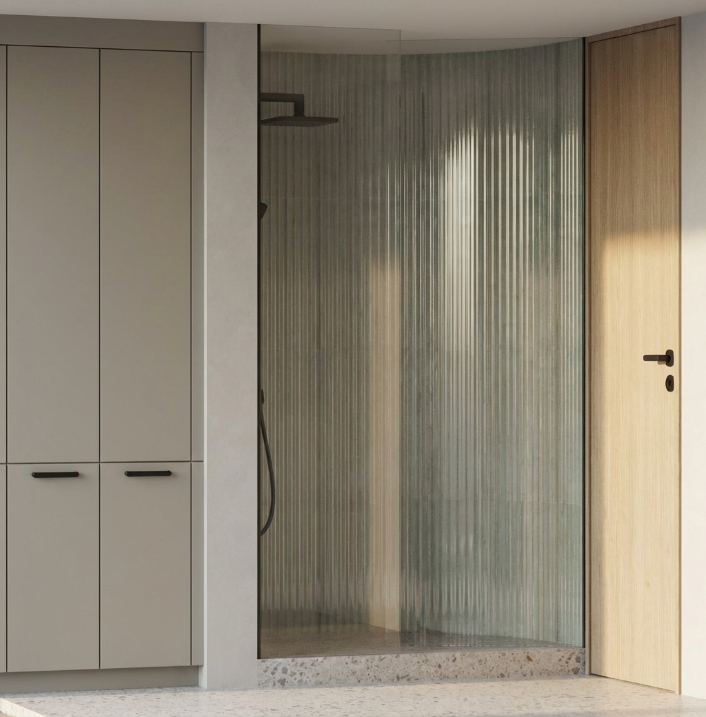 remove the tile between the grout line directly to the right of the shower curtain rod and the right end of the mirror fill in this wall space with the plain wall material that is used in the rest of the scene