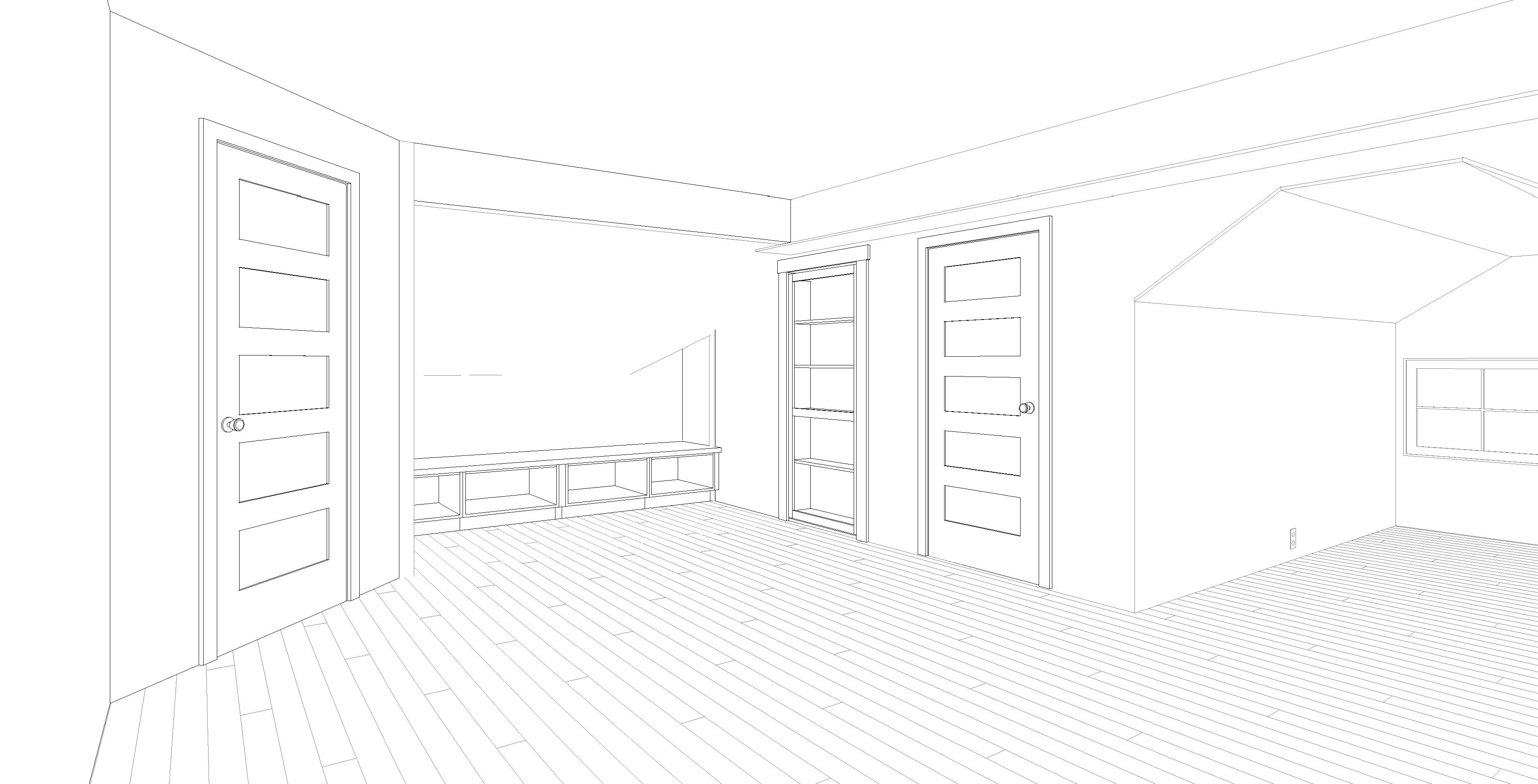 convert to high quality rendering add bed under window and show bookshelf as hidden door