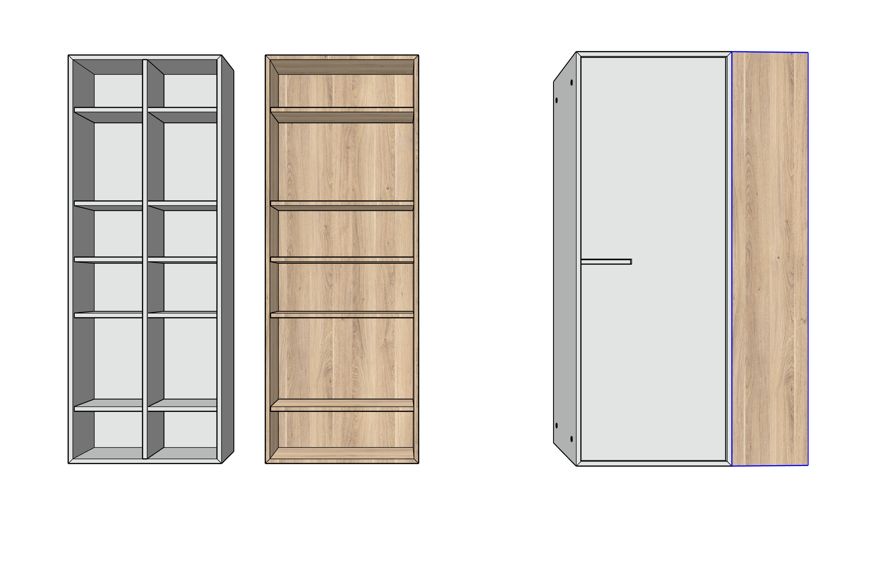 furniture on a concrete floor with a white background grey and bleached oak matt finishes no decorations