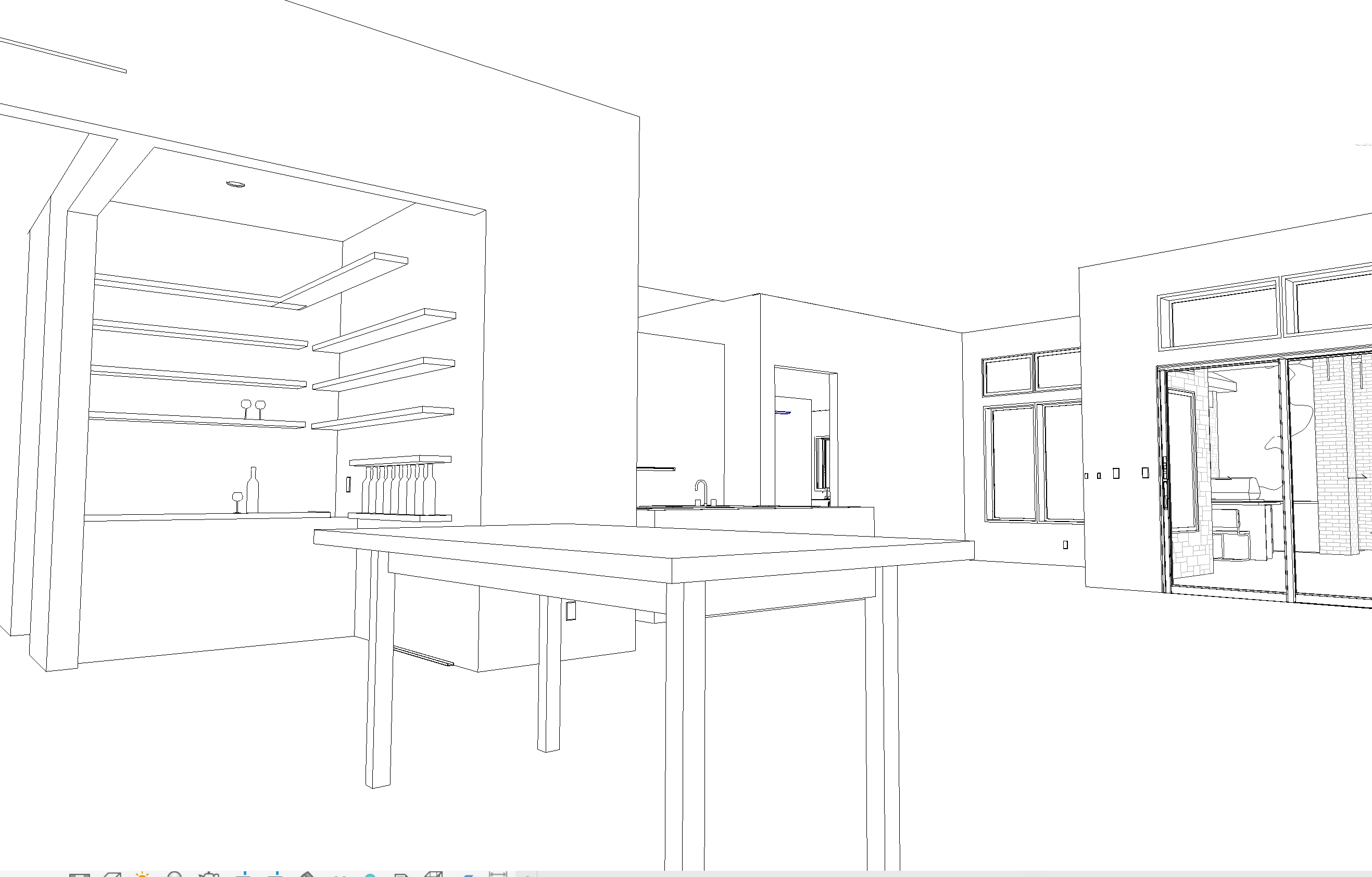 interior elevation with rustic beams over dining table with a round iron and cryla hanging light glass wine room