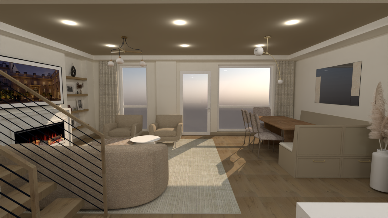 please make window show trees outside in a yard just as wide as this room fences on either side keep inside as is