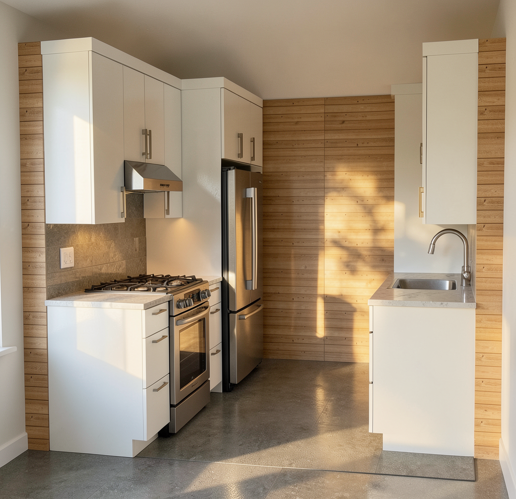 hyper realistic architectural photography high end interior design soft natural sunlight streaming through windows long soft shadows subtle ambient artificial lighting dimmable warm led accents realistic textures 8k resolution highly detailed shot on phase one xf global illumination raytraced reflections clean minimalist aesthetic lock all previous settings subject add some food and european people in this picture