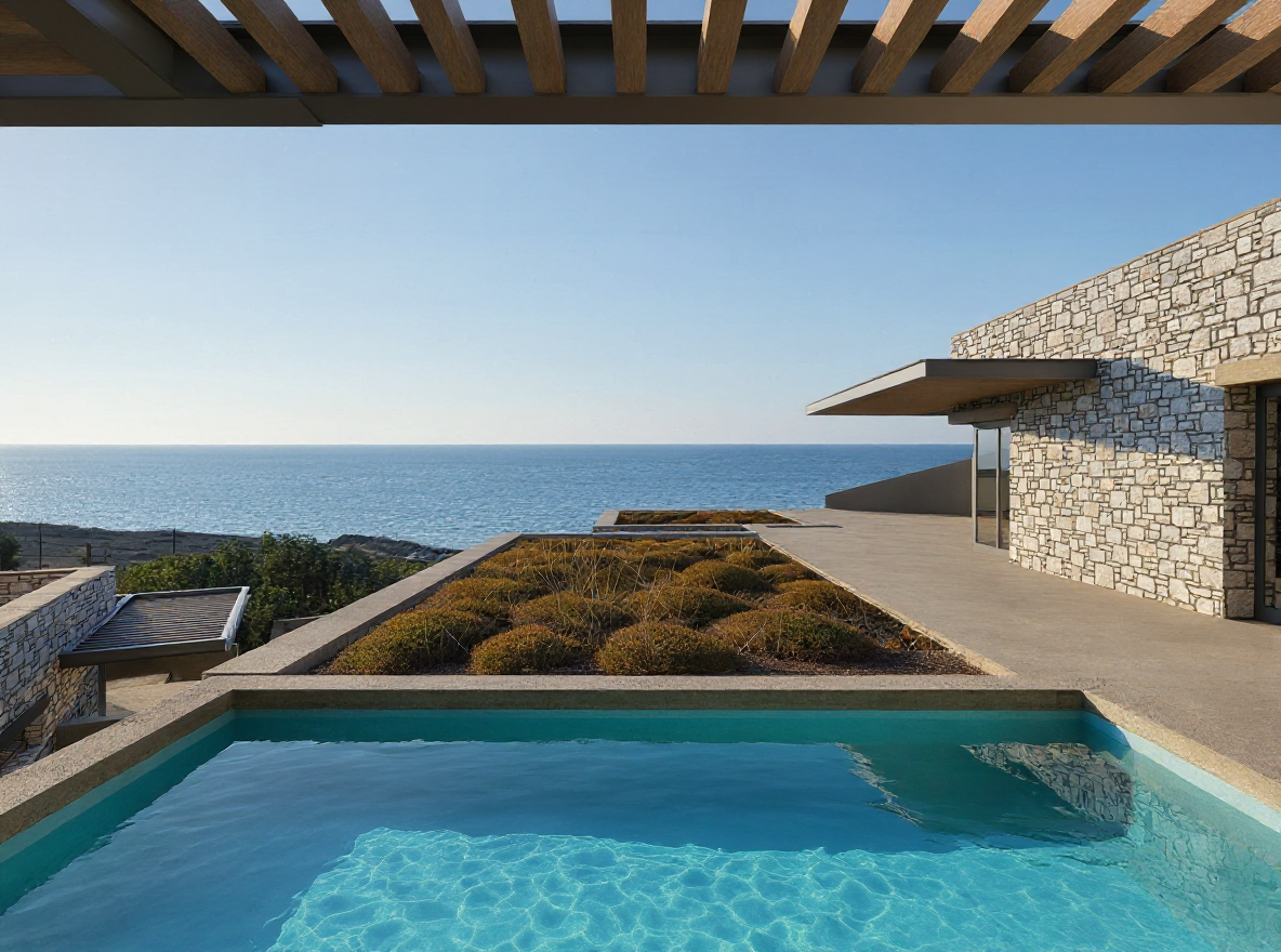 prairie style exterior shot exterior modern farmhouse with black roof black windows black board and batten siding brown wood timbers dark brown horizontal siding light colored stone white stucco architecture