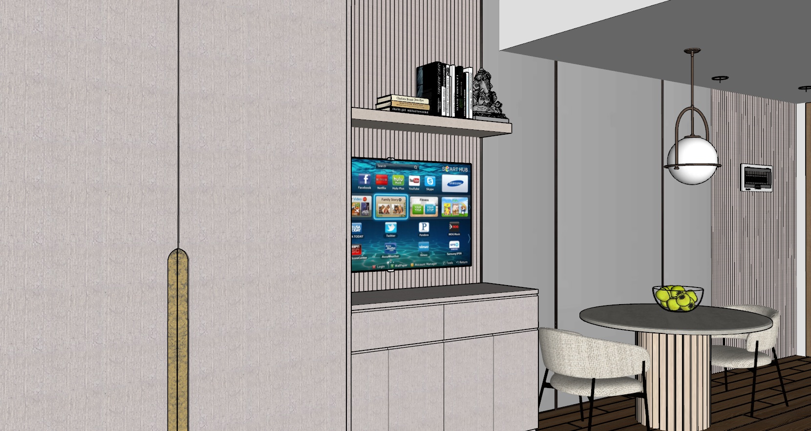 3 mirror from the vacant wall from floor to ceiling behind dining table and chair