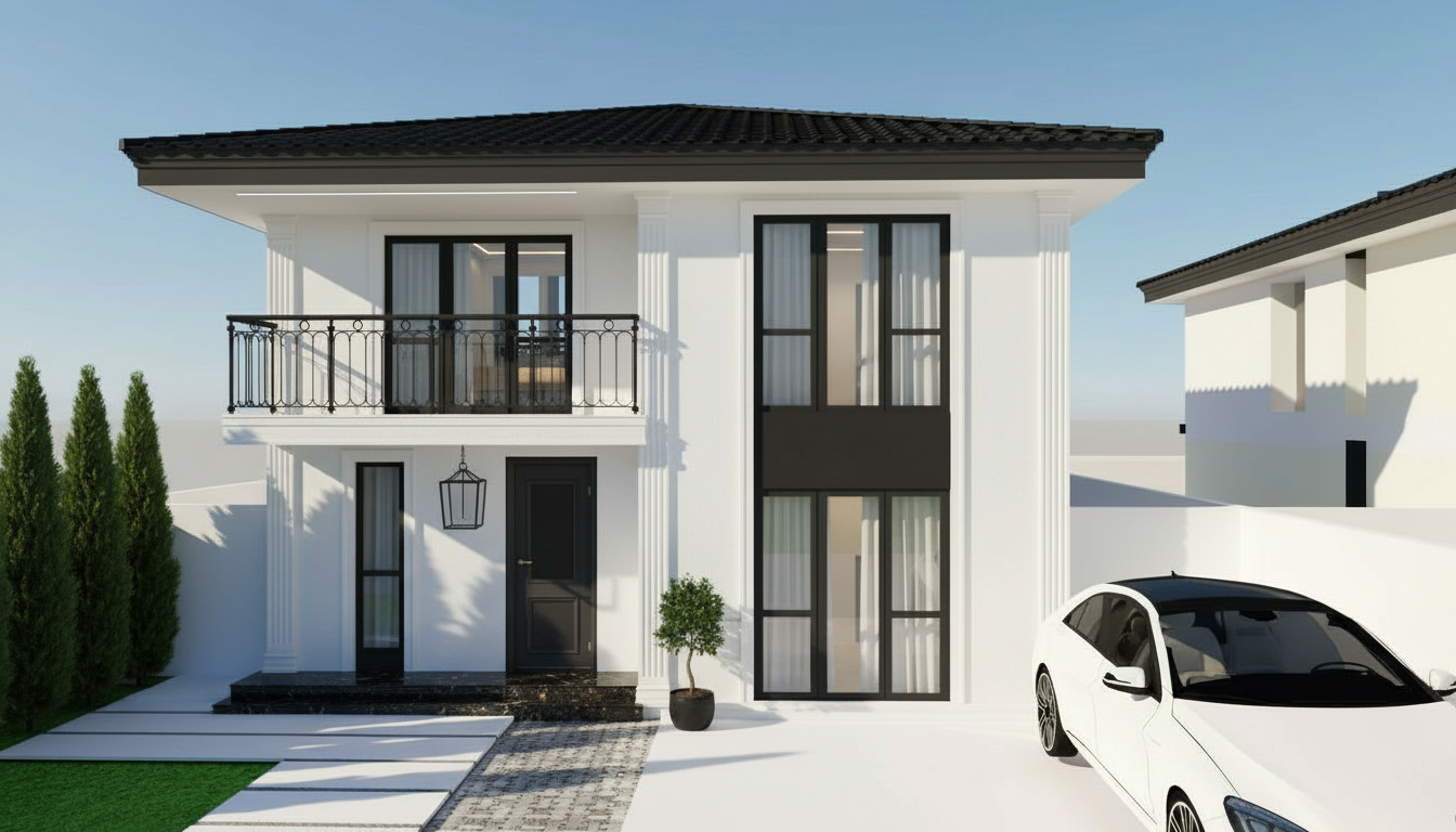 transform the provided coffee bar interior image into a high end photorealistic minimal italian caf interior with a refined morning coffee atmosphere add italian elements decoration lights and accessories in the wall while preserving the original shapes and materials floor tiles are black and white pattern do not change the color or the pattern white ceiling and beige walls