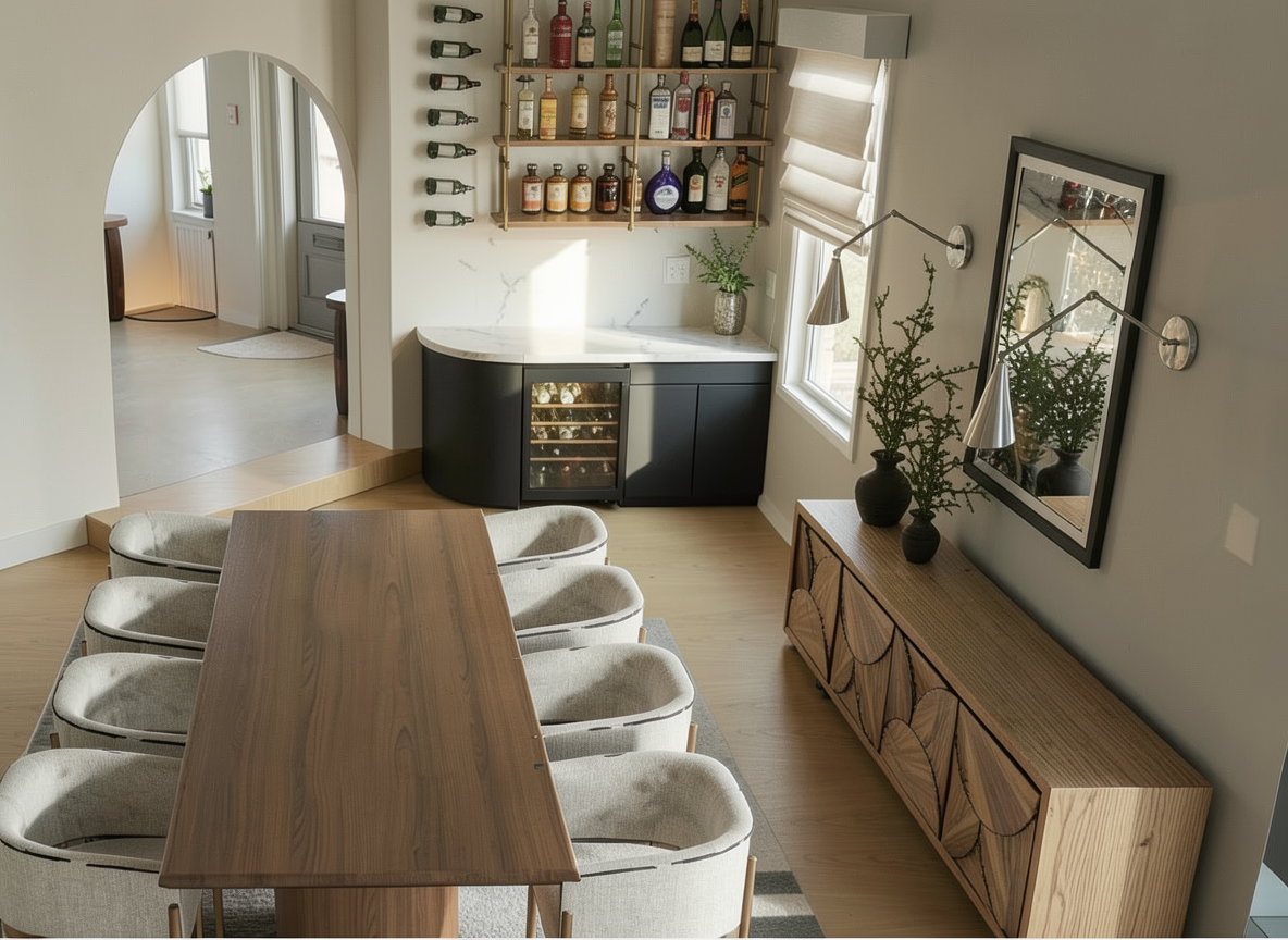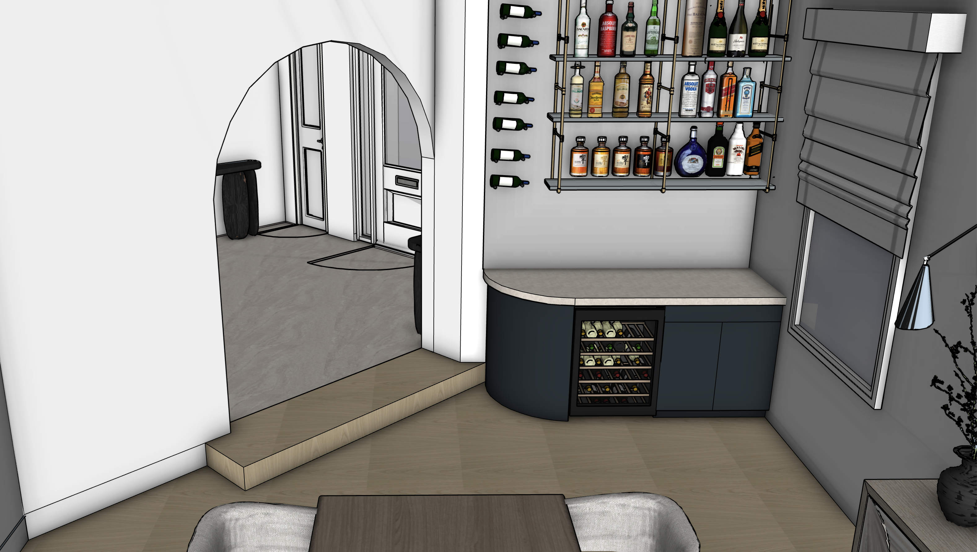 add a mirror behind the bar and make photorealistic