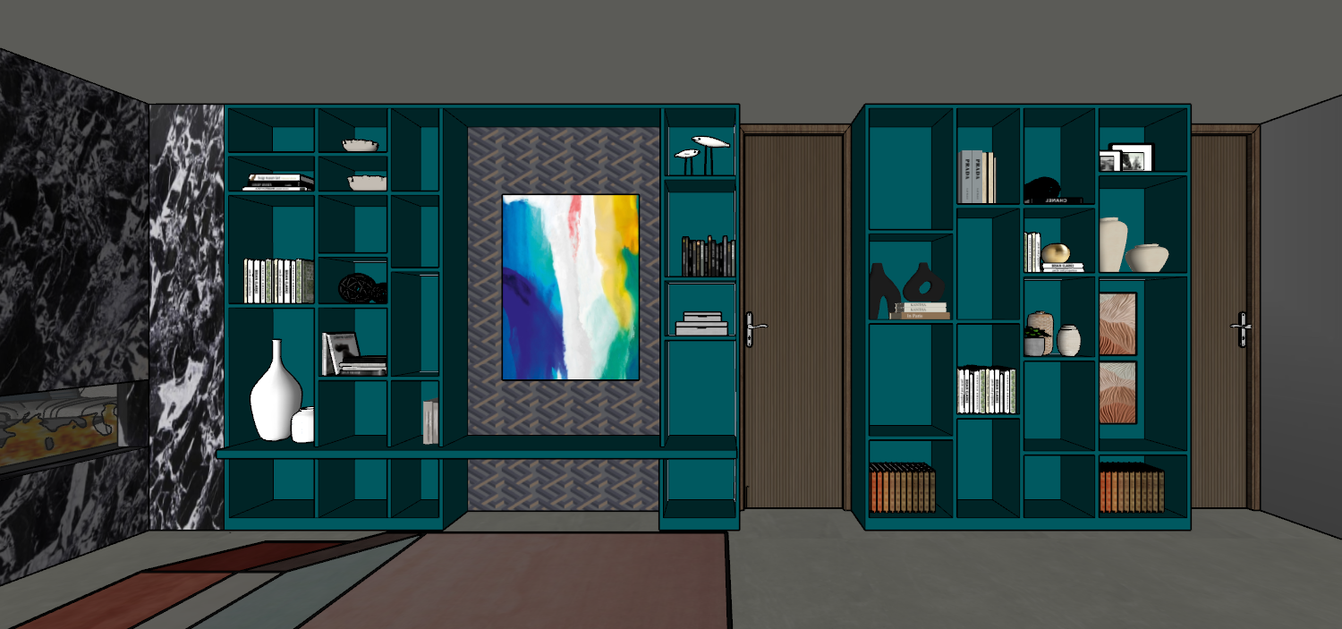 do not add sunlight add lights to shelves make the fire in the fireplace more realistic right side wall at the end is a mirrored wall remove the fire from the art doors are flat panel wood
