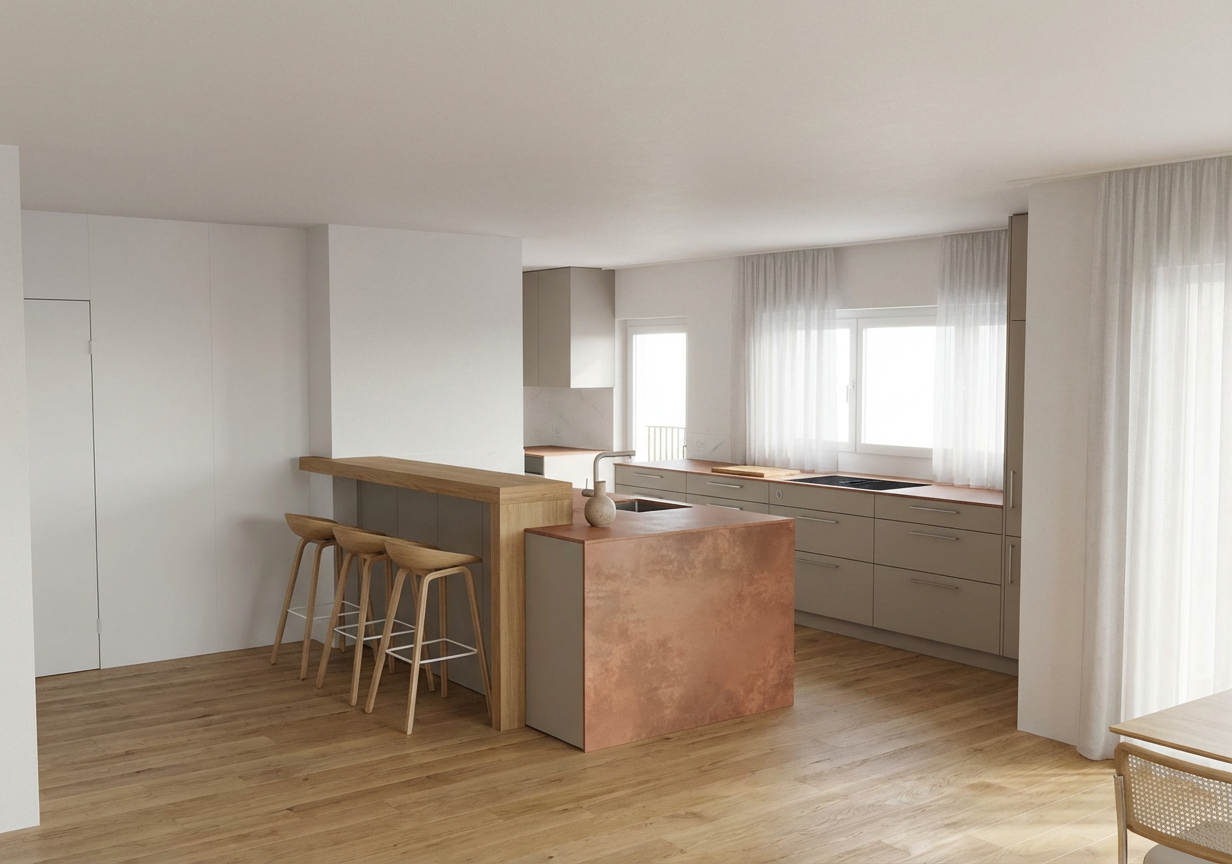 don t change anything of the architecture or layout change the colour of the central purple rug into terra cotta rug change the light timing around 1pm a bit less golden hour