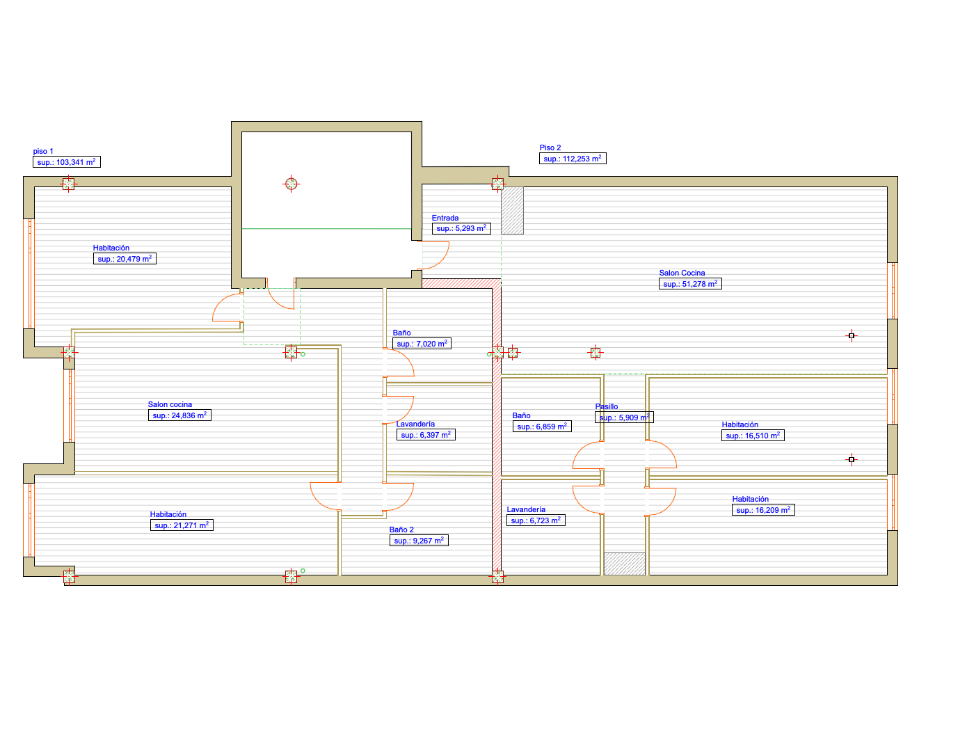 convert this floor plan into a realistic isometric 3d view of a full house show the space from an elevated angle with furniture walls and details visible photorealistic top down axonometric render of a two apartment interior maintain exact layout proportions walls openings two bedrooms on the left with double beds light wood flooring neutral textiles and soft natural light from large windows with sheer white curtains open plan living dining space in the center right with a beige l shaped sofa round coffee table natural fiber rug and a wooden dining table for six aligned with a minimalist linear pendant light kitchen at the top with continuous light oak cabinetry integrated appliances and a clean modern design bathroom on the top right with beige ceramic tiles bathtub toilet and minimal fixtures entry at bottom right with small hall transition style scandinavian minimalism warm neutral palette light oak wood soft shadows indirect sunlight high realism clean composition add subtle indoor plants and natural textures no changes to geometry structure or layout use the same furniture as shows on the plan do not change the orientation of the floorplan
