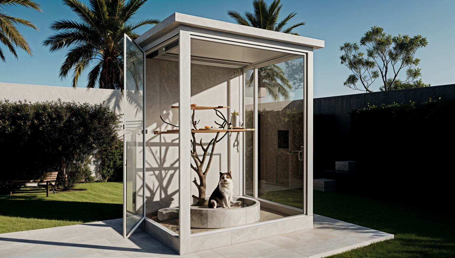 luxury home spa room with cold plunge pool with reeded walnut edges shower with glass walls on right side brass fixtures horizontal walnut slats on walls soft luxurious lighting add some spa decor details herringbone marble flooring wall is mosiac marble as shown in picture backlit onyx slab on wall on left side one niche in shower on right side no grab bars on walls