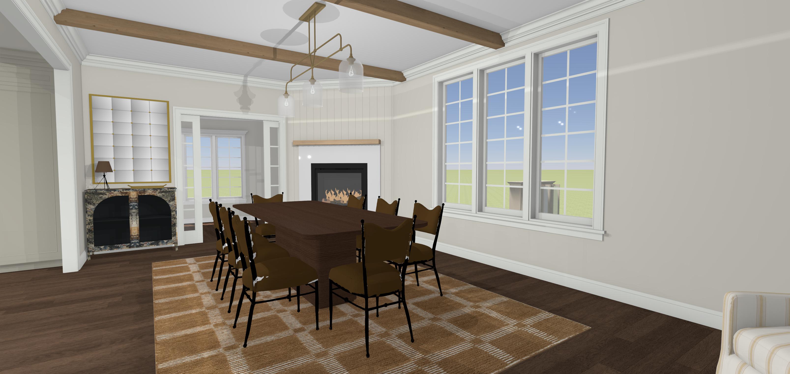 make this rendering more realistic keep the dining chairs a taupey mustard yellow gold color and make sure there are no white spots on the dining chairs