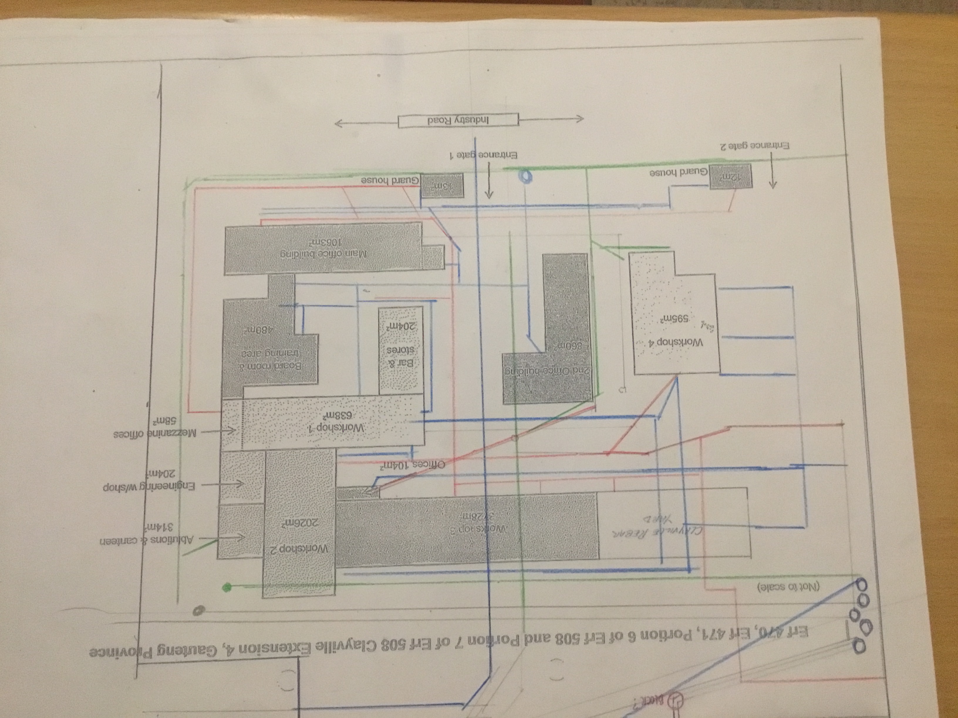 modernist exterior shot the shaded squares and rectangles are the buildings the individual lines in their separate colours represent different utility lines i e blue is the waterline red is the electric line green is the sewer line keeping this n mind produce a utilities map keeping each line in the colour they are currently in architecture