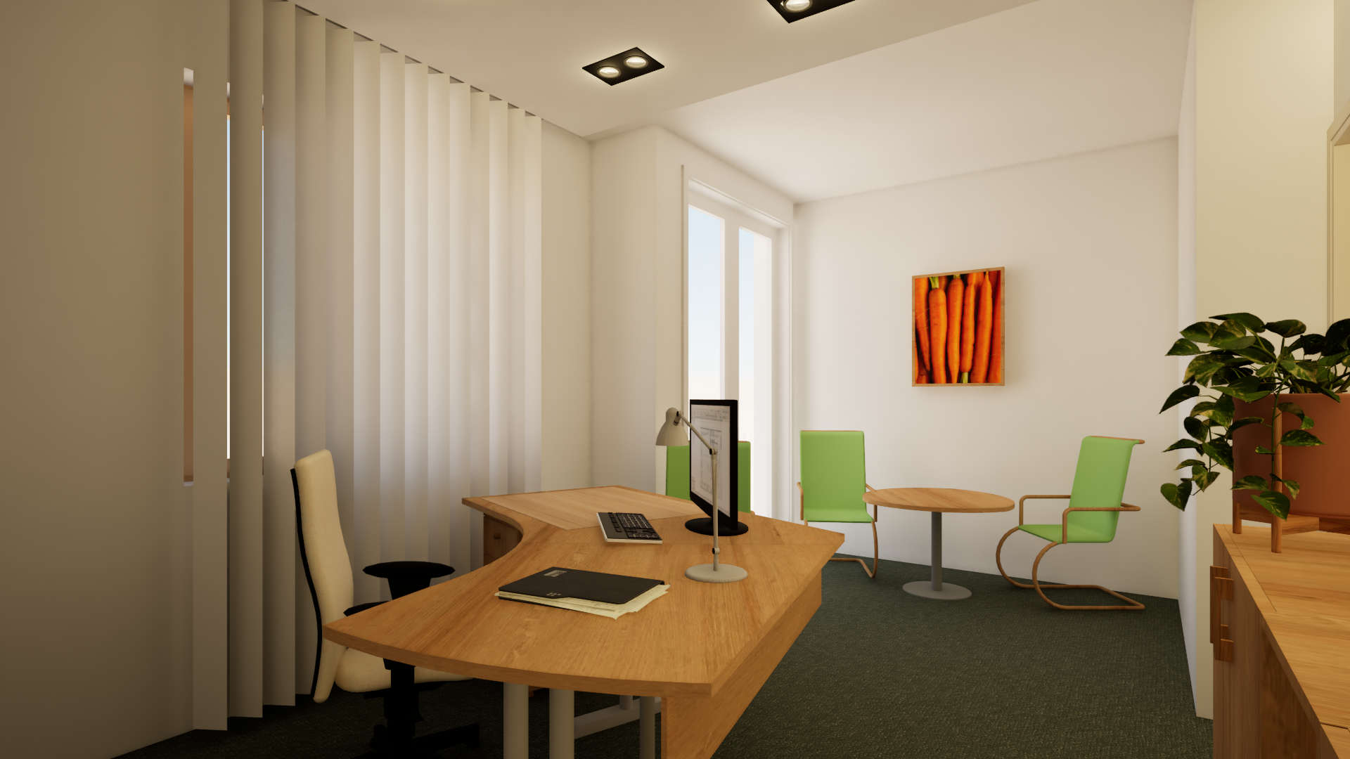 create a photorealistic visual plan make it realistic the table legs are matt aluminium color the chair is wood legs