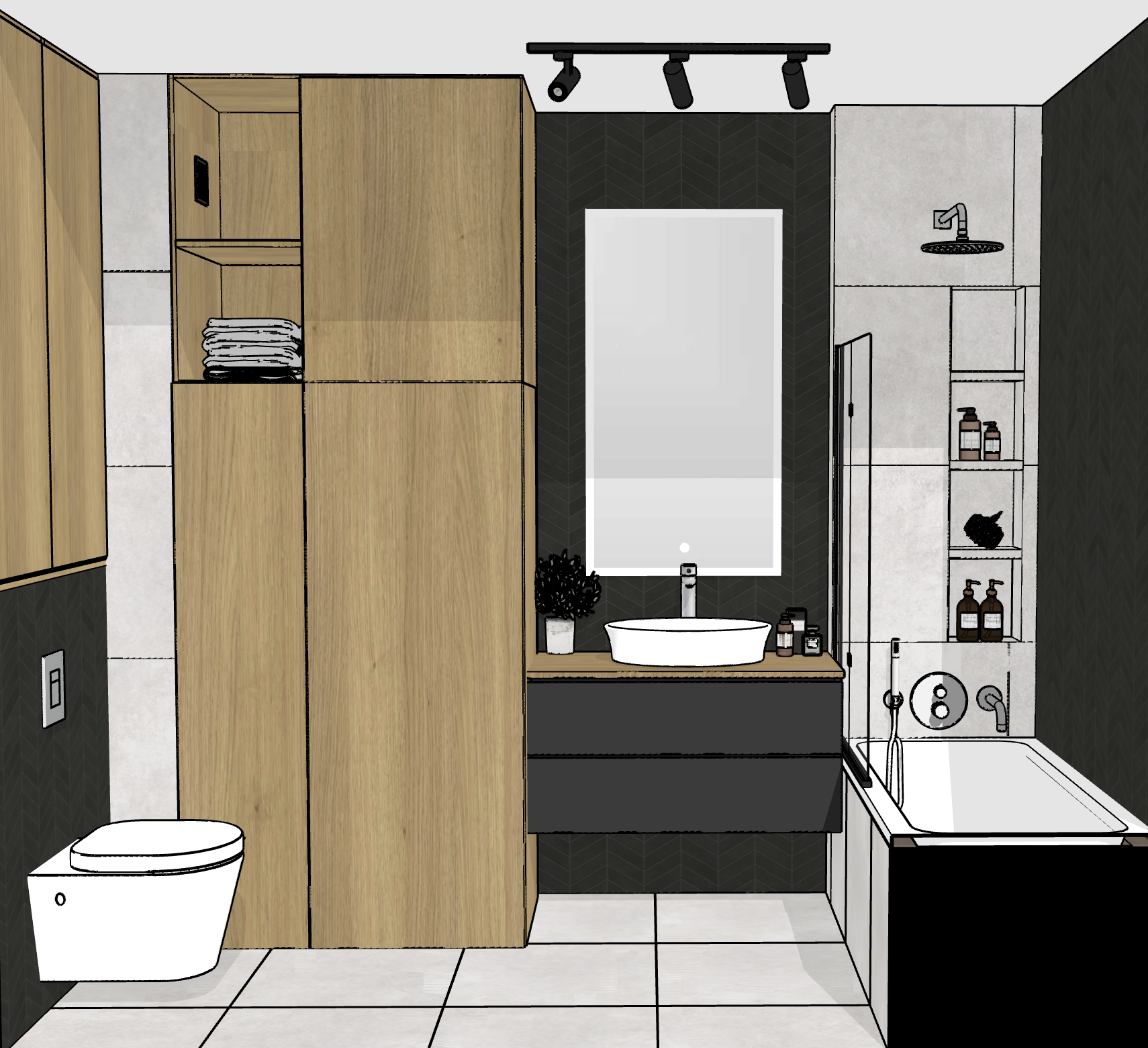 dodaj o wietlenie w p kach pod prysznicem w p kach w zabudowie oraz pod wietlenie lustra reszty nie zmieniaj