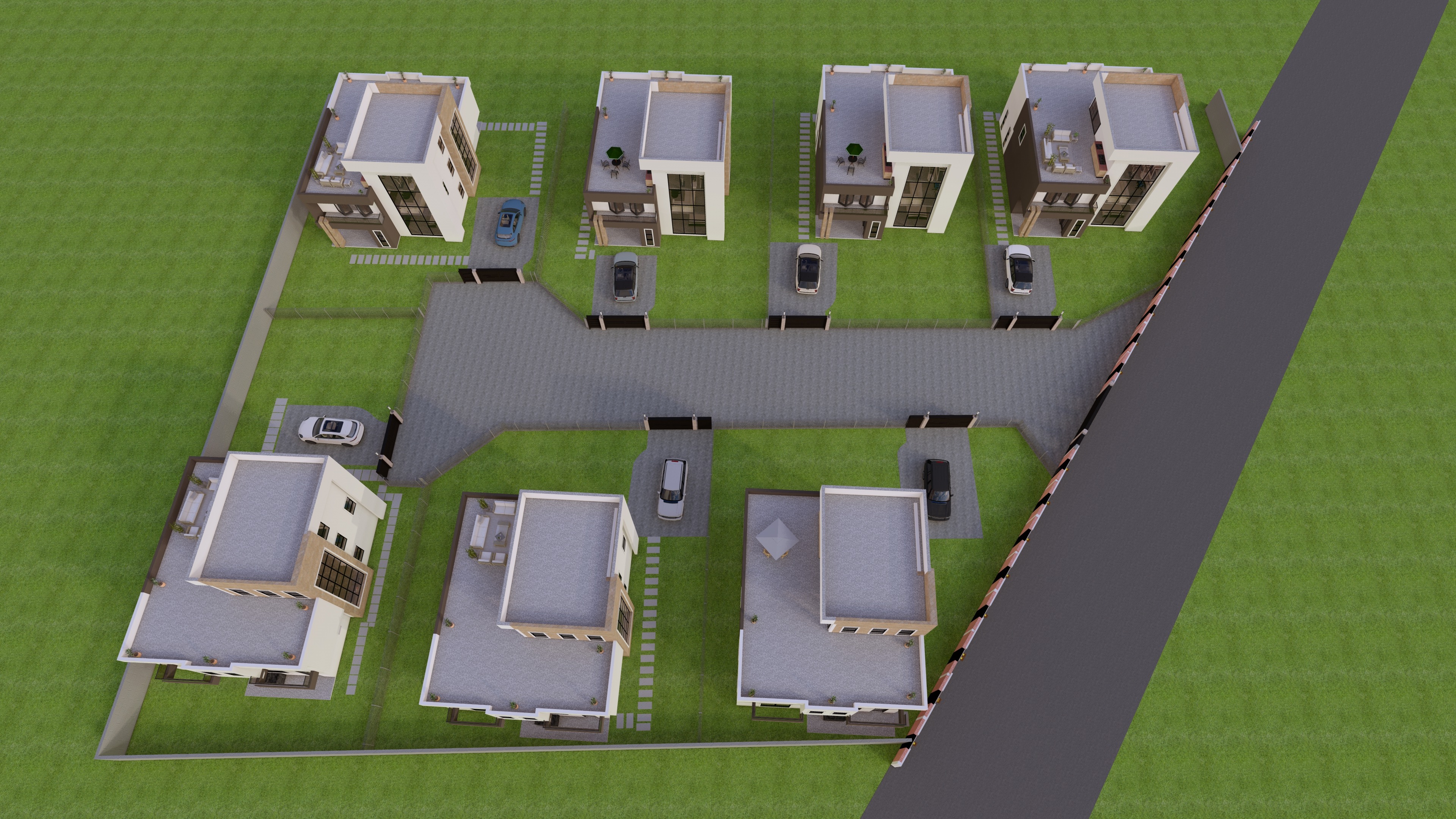add very few tree and vegetation in background to give model context add indoor warm lighting