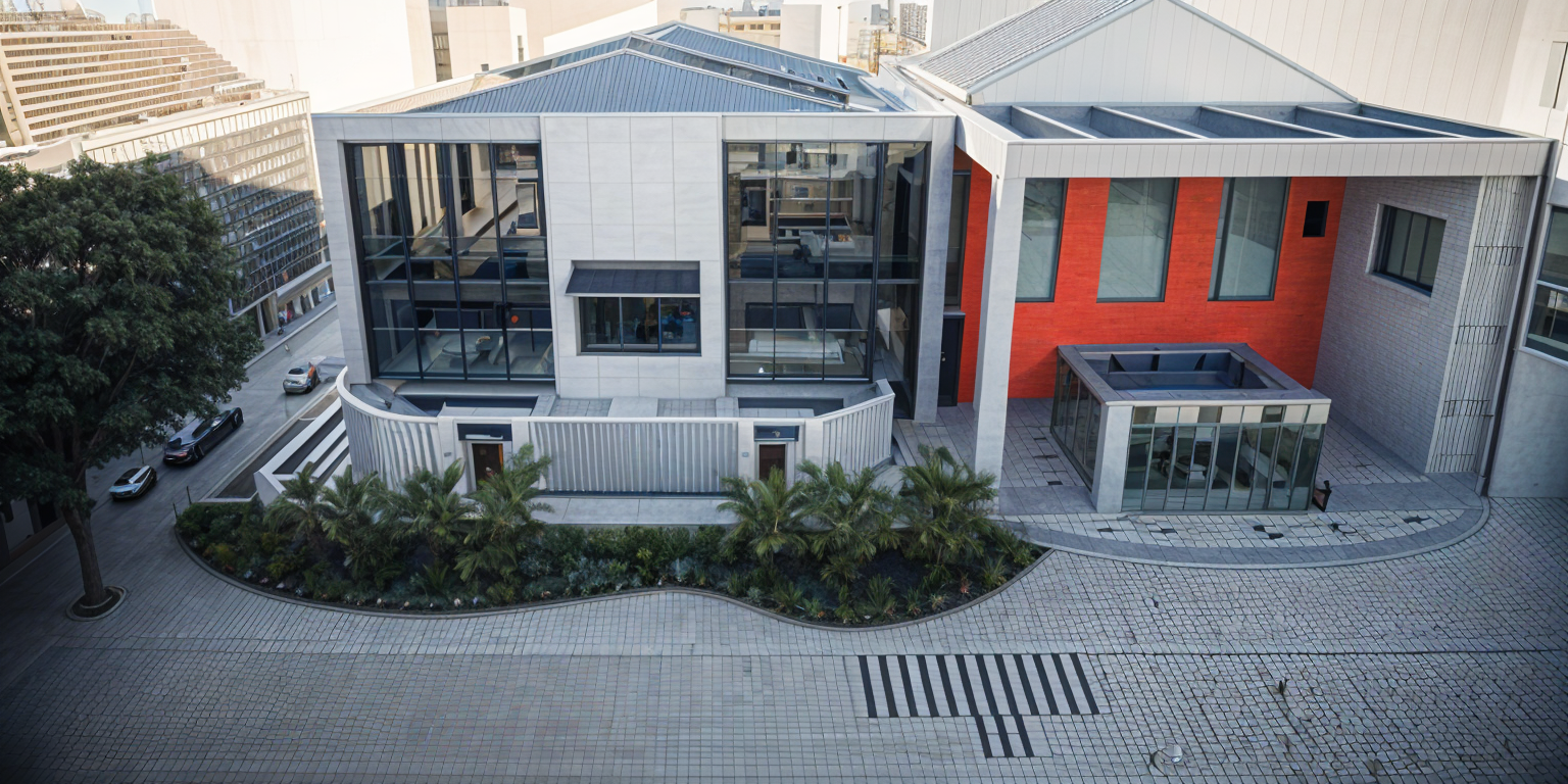 exterior shot a beatiful minimalist office palace on a sunny day architecture