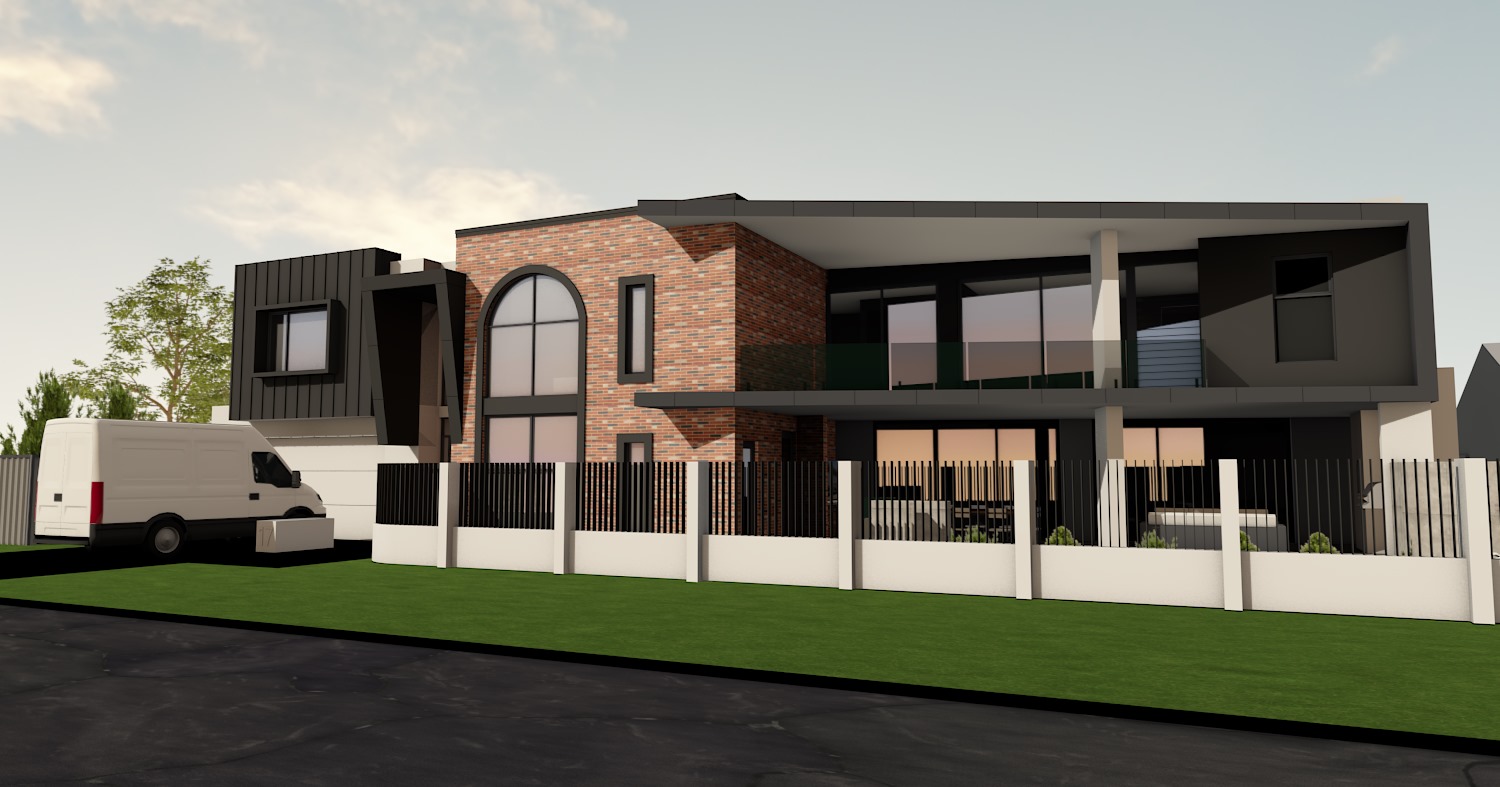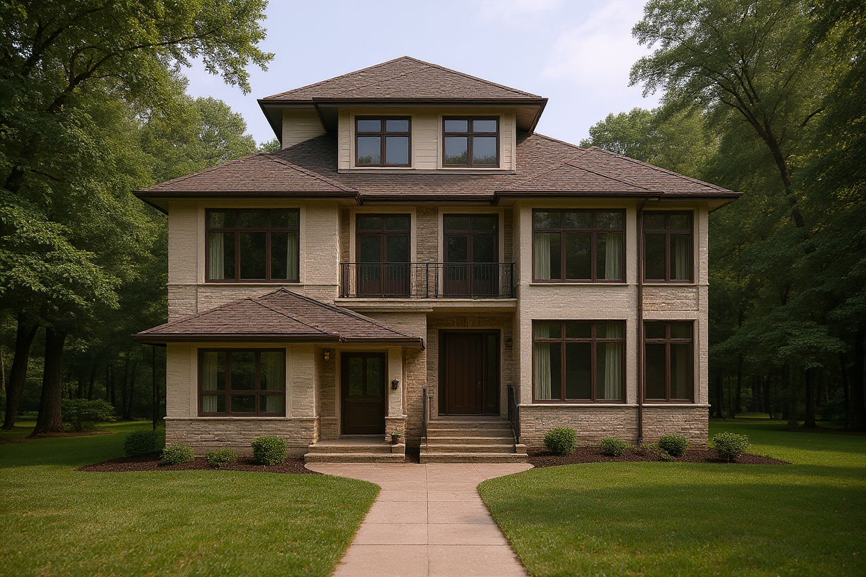 sunny afternoon with some clouds surrounded by buildings mirrored glass