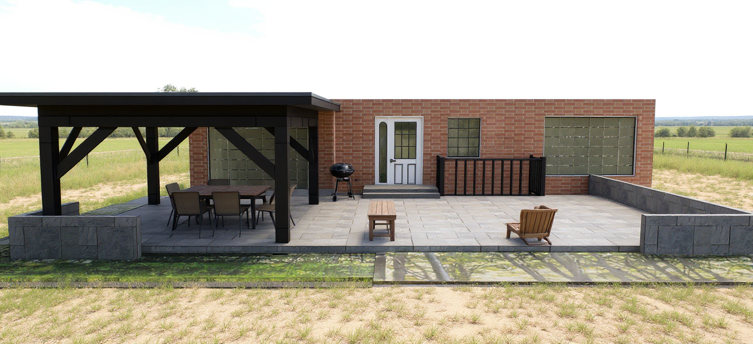 a photorealistic high resolution interior rendering of a modern farmhouse bar designed for architectural showcase retain all existing details white shaker cabinetry white shelves light gray quartz countertops moody artificial down lights natural wood flooring with dark stain emphasize realistic material textures subtle reflections on the countertops fine wood grain on the floors and soft matte paint finishes on cabinetry maintaining focus on the bars clean timeless design and craftsmanship